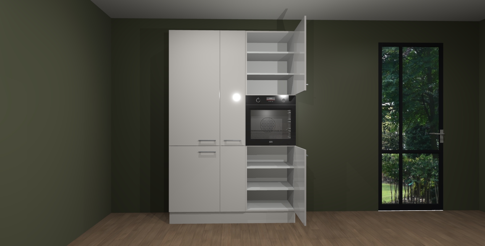 Met een modern, tijdloos design en ruime opslagruimte, zult u zich in no-time thuis voelen in uw nieuwe keuken. Uw leven wordt eenvoudiger met de soft-close deuren die voor het ultieme stille comfort zorgen - geen geluid dat u stoort terwijl u kookt. Ook is de keuken voorzien van 5 ingebouwde apparaten: een oven, inductie kookplaat, afzuigkap, vaatwasser en koelkast. Deze kunnen gemakkelijk na bestelling worden bijgewerkt naar AEG - waardoor uw luxe ervaring compleet is.
