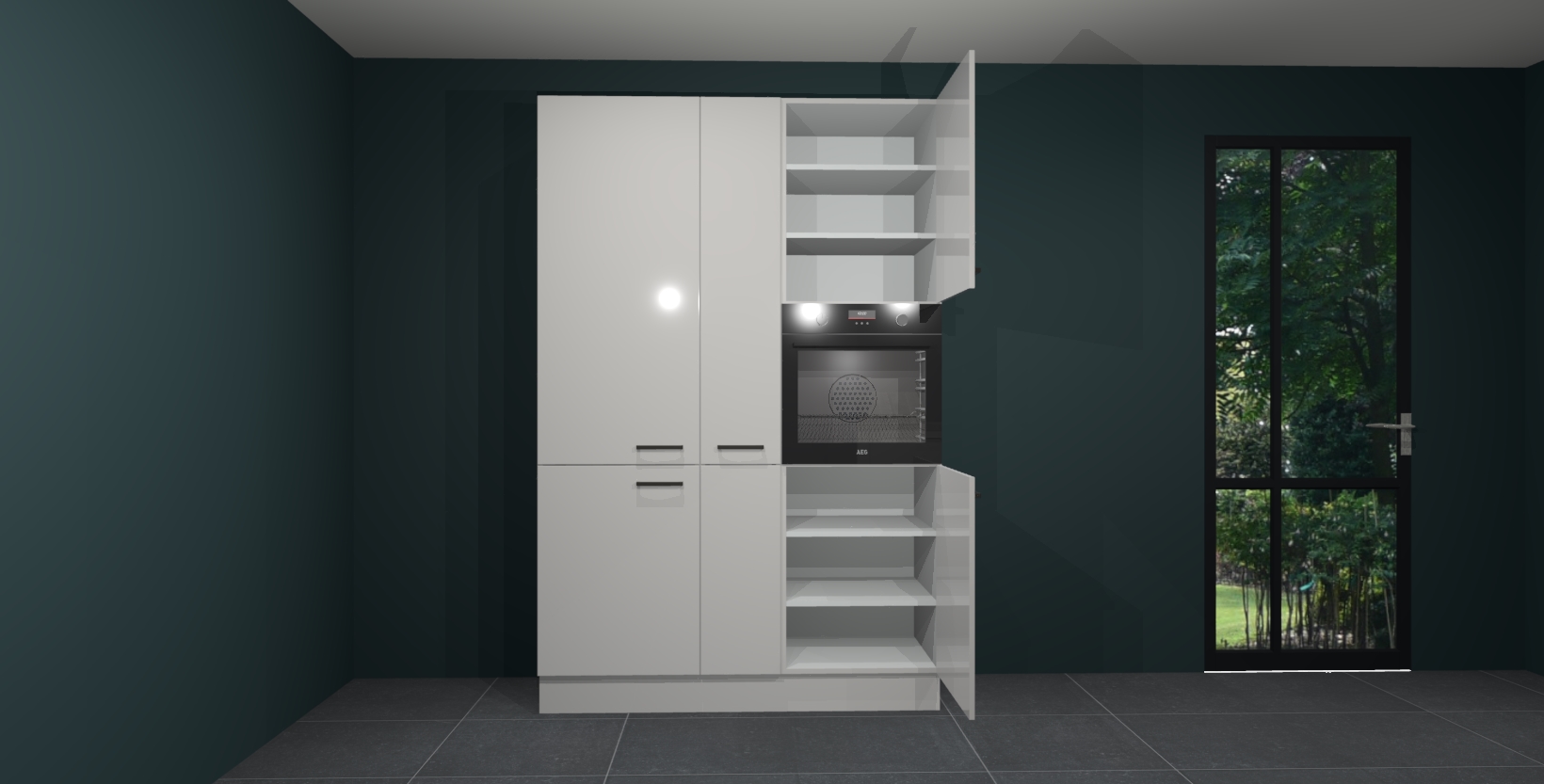 Met een modern, tijdloos design en ruime opslagruimte, zult u zich in no-time thuis voelen in uw nieuwe keuken. Uw leven wordt eenvoudiger met de soft-close deuren die voor het ultieme stille comfort zorgen - geen geluid dat u stoort terwijl u kookt. Ook is de keuken voorzien van 5 ingebouwde apparaten: een oven, inductie kookplaat, afzuigkap, vaatwasser en koelkast. Deze kunnen gemakkelijk na bestelling worden bijgewerkt naar AEG - waardoor uw luxe ervaring compleet is.