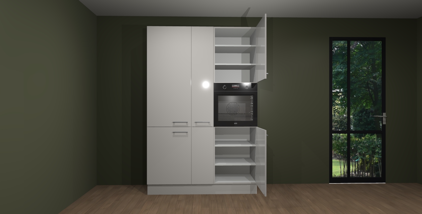 Met een modern, tijdloos design en ruime opslagruimte, zult u zich in no-time thuis voelen in uw nieuwe keuken. Uw leven wordt eenvoudiger met de soft-close deuren die voor het ultieme stille comfort zorgen - geen geluid dat u stoort terwijl u kookt. Ook is de keuken voorzien van 5 ingebouwde apparaten: een oven, inductie kookplaat, afzuigkap, vaatwasser en koelkast. Deze kunnen gemakkelijk na bestelling worden bijgewerkt naar AEG - waardoor uw luxe ervaring compleet is.
