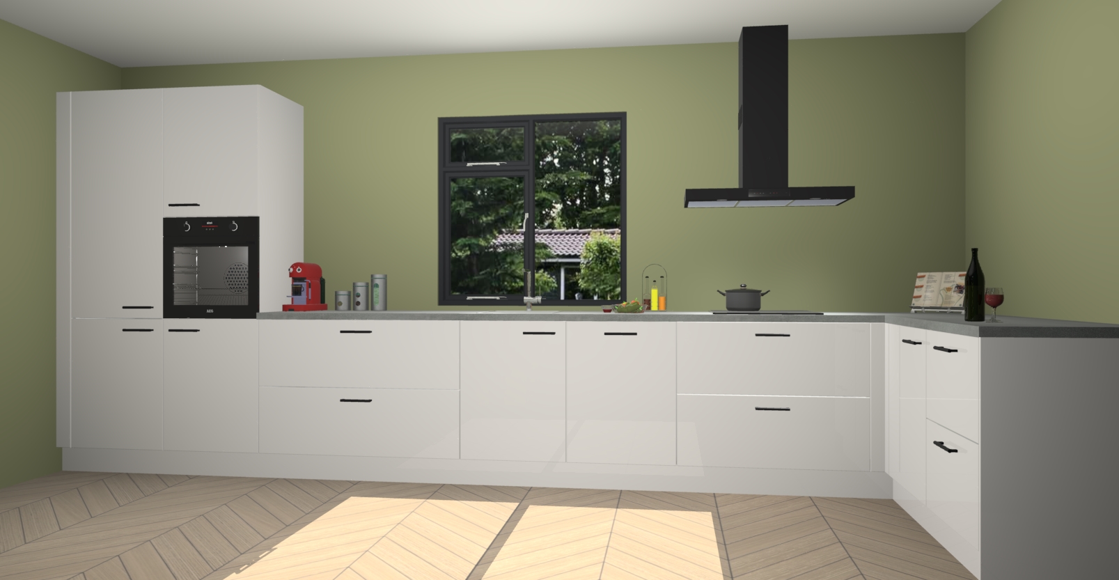 De Zijdegrijze hoogglans keuken Lille wordt geleverd met vijf inbouwapparaten - een oven, inductiekookplaat, afzuigkap, vaatwasser en koelkast. Maar dat is nog niet alles! Na bestelling kunnen deze apparaten eenvoudig worden geüpgraded naar premium AEG-apparatuur. Bovendien is er zelfs de optie om de oven te vervangen door een combimagnetron of uw inductiekookplaat te vervangen door een kookplaat met geïntegreerde afzuiging.