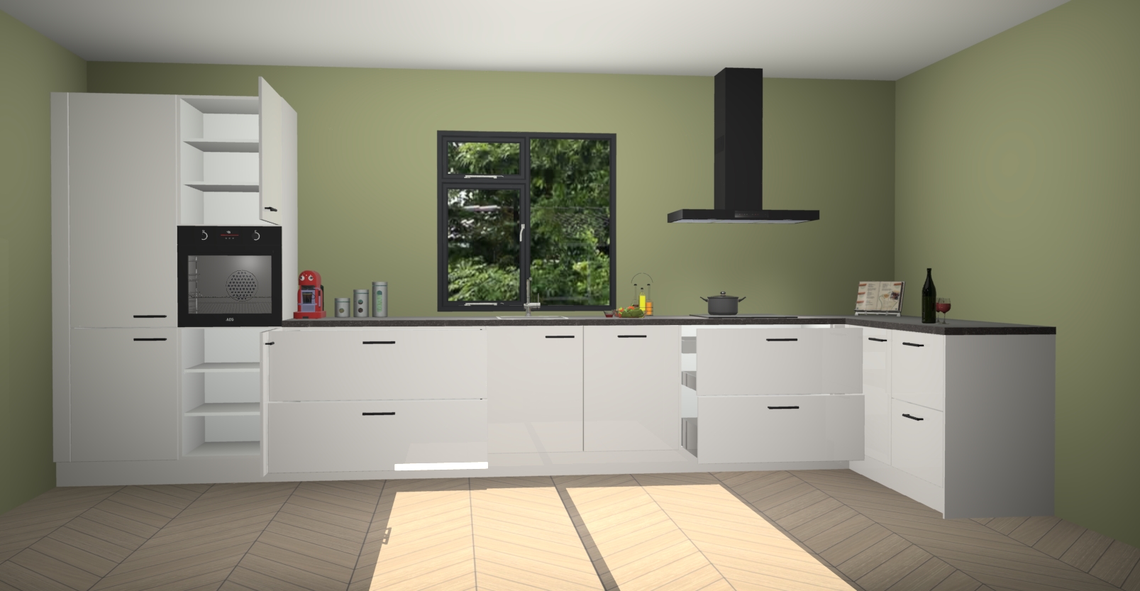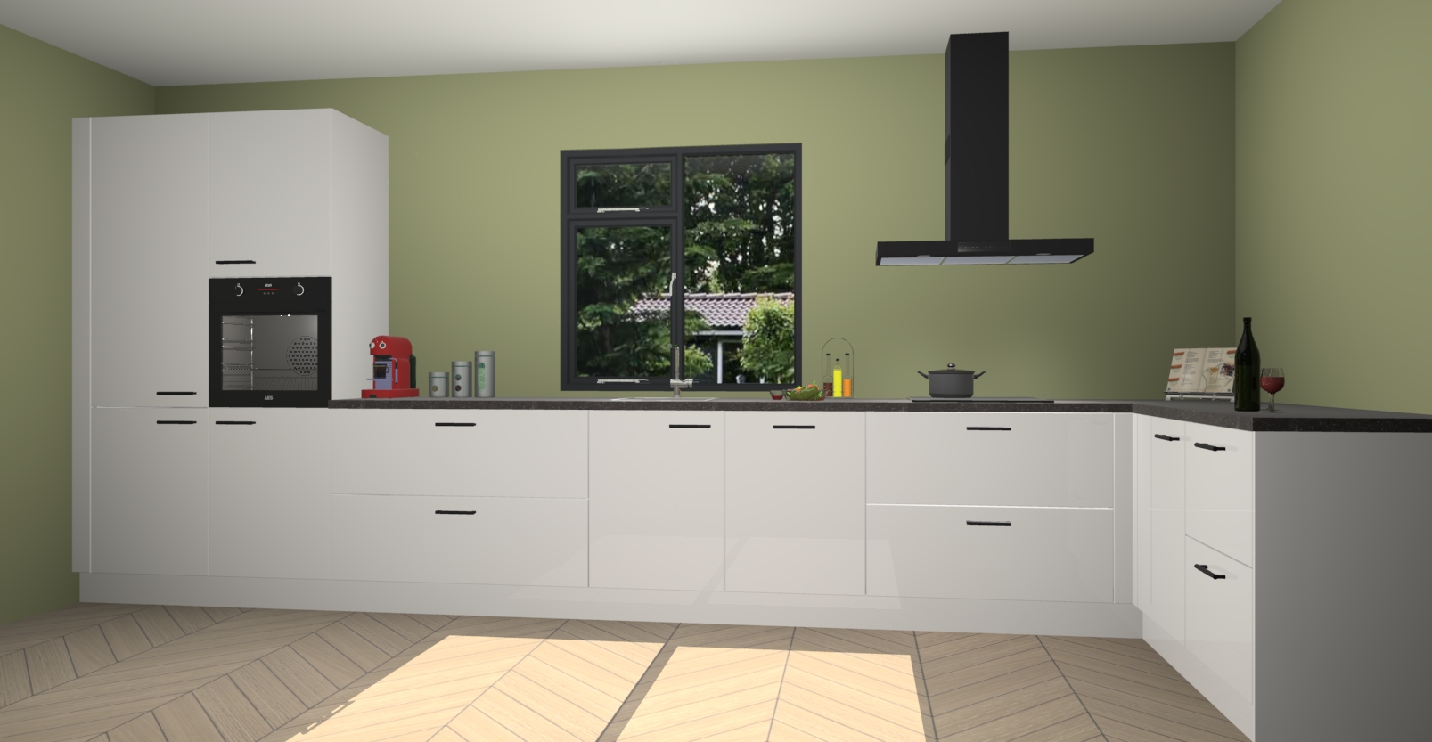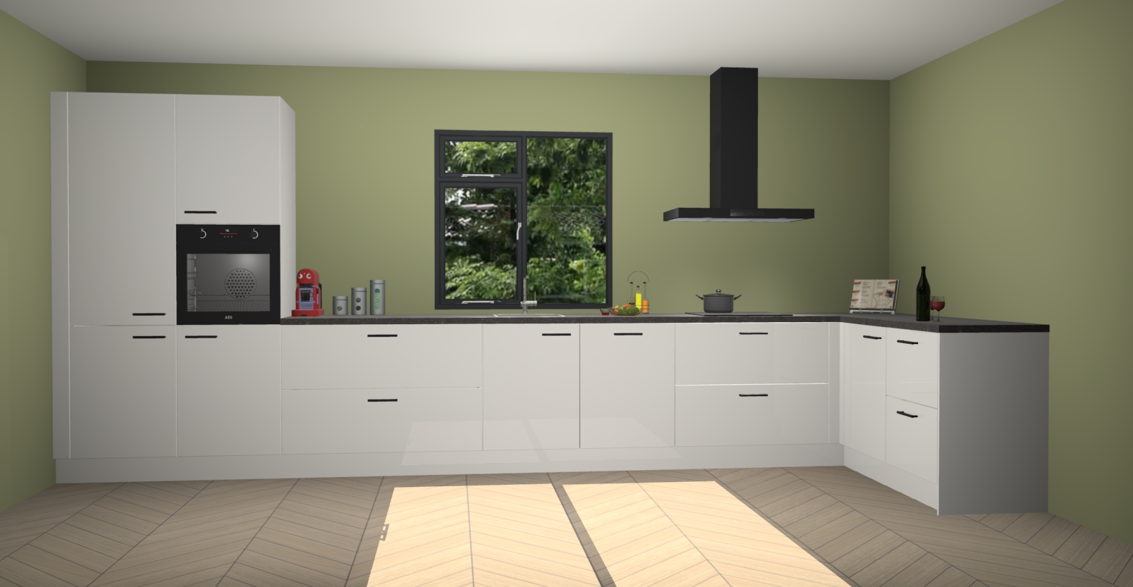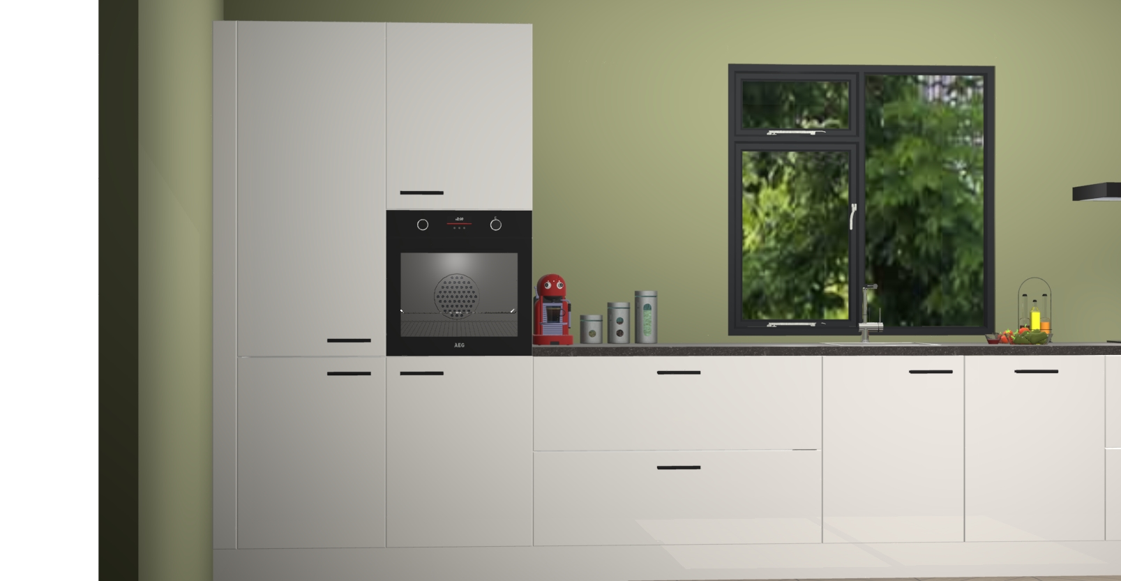 De Zijdegrijze hoogglans keuken Lille wordt geleverd met vijf inbouwapparaten - een oven, inductiekookplaat, afzuigkap, vaatwasser en koelkast. Maar dat is nog niet alles! Na bestelling kunnen deze apparaten eenvoudig worden geüpgraded naar premium AEG-apparatuur. Bovendien is er zelfs de optie om de oven te vervangen door een combimagnetron of uw inductiekookplaat te vervangen door een kookplaat met geïntegreerde afzuiging.