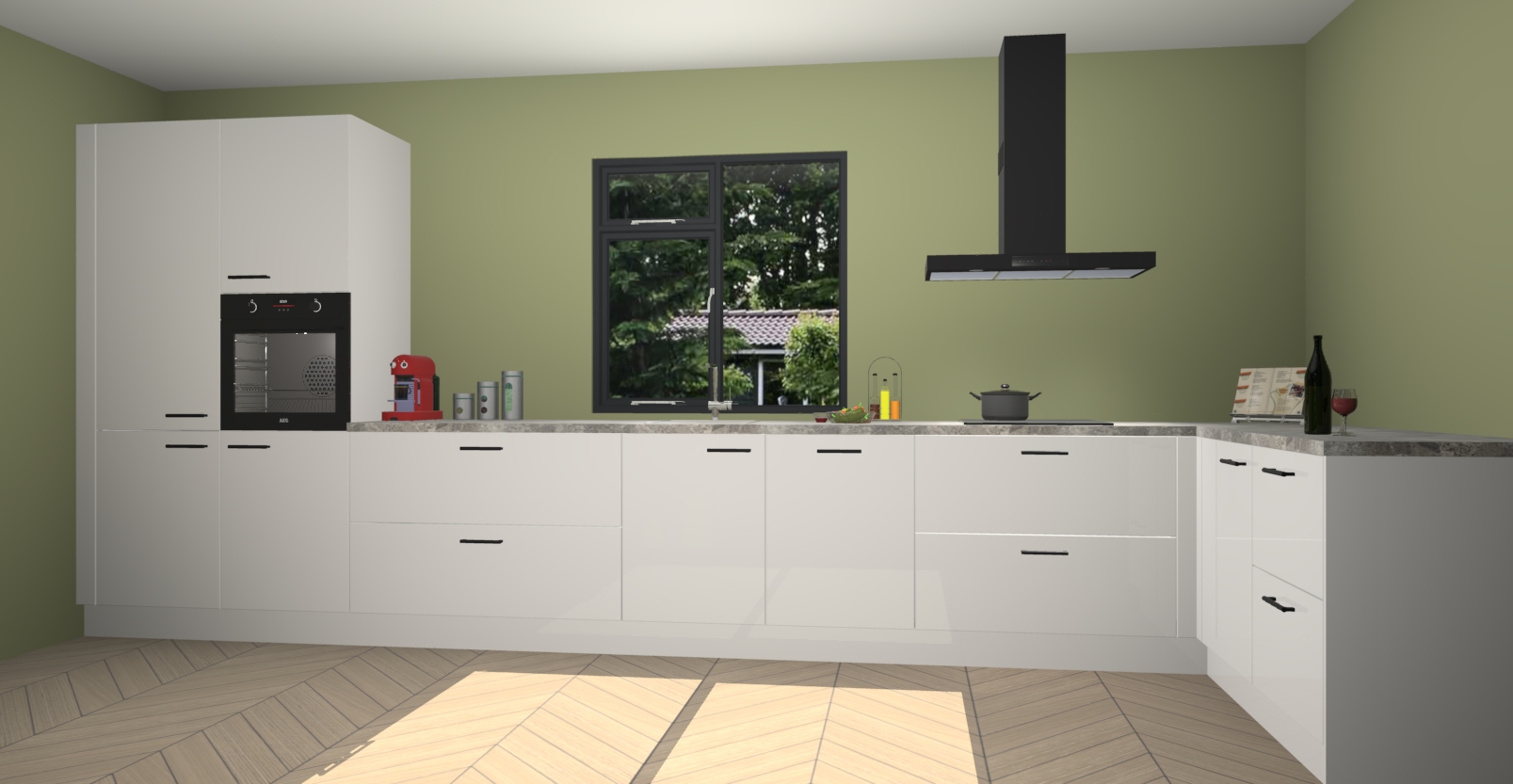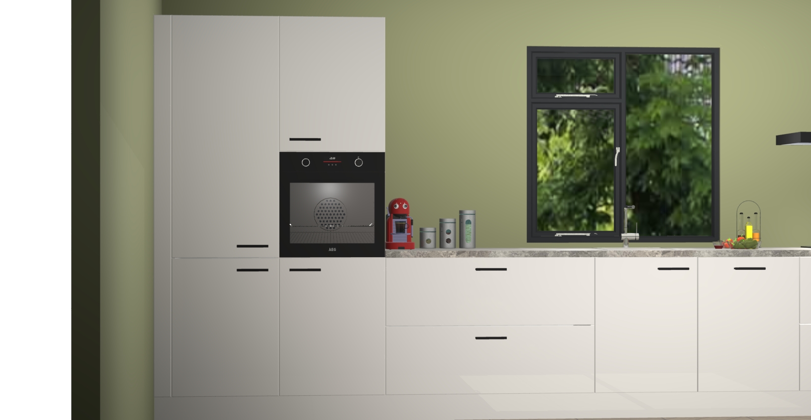 De Zijdegrijze hoogglans keuken Lille wordt geleverd met vijf inbouwapparaten - een oven, inductiekookplaat, afzuigkap, vaatwasser en koelkast. Maar dat is nog niet alles! Na bestelling kunnen deze apparaten eenvoudig worden geüpgraded naar premium AEG-apparatuur. Bovendien is er zelfs de optie om de oven te vervangen door een combimagnetron of uw inductiekookplaat te vervangen door een kookplaat met geïntegreerde afzuiging.