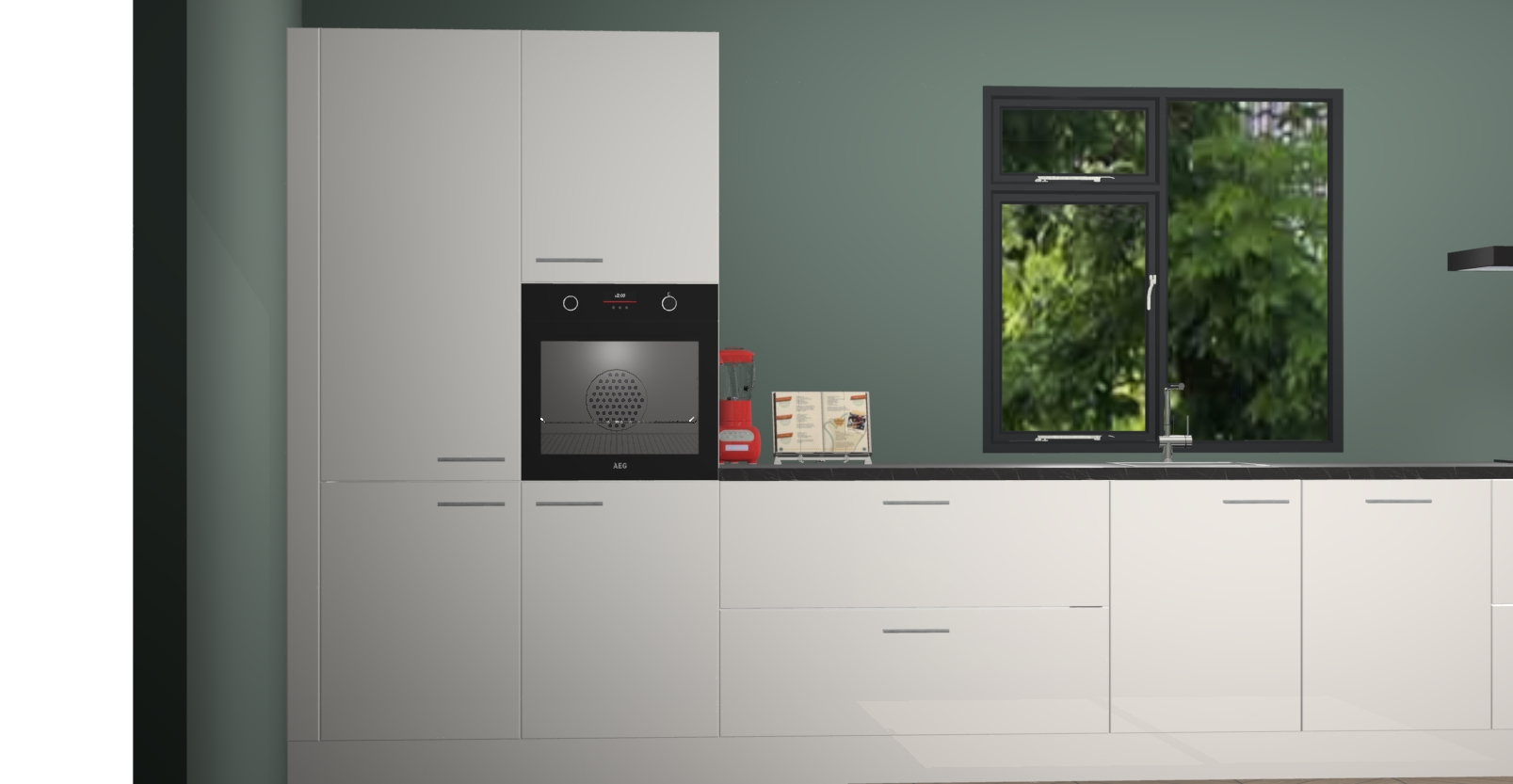De Zijdegrijze hoogglans keuken Lille wordt geleverd met vijf inbouwapparaten - een oven, inductiekookplaat, afzuigkap, vaatwasser en koelkast. Maar dat is nog niet alles! Na bestelling kunnen deze apparaten eenvoudig worden geüpgraded naar premium AEG-apparatuur. Bovendien is er zelfs de optie om de oven te vervangen door een combimagnetron of uw inductiekookplaat te vervangen door een kookplaat met geïntegreerde afzuiging.