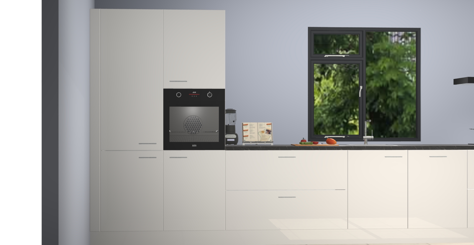De Zijdegrijze hoogglans keuken Lille wordt geleverd met vijf inbouwapparaten - een oven, inductiekookplaat, afzuigkap, vaatwasser en koelkast. Maar dat is nog niet alles! Na bestelling kunnen deze apparaten eenvoudig worden geüpgraded naar premium AEG-apparatuur. Bovendien is er zelfs de optie om de oven te vervangen door een combimagnetron of uw inductiekookplaat te vervangen door een kookplaat met geïntegreerde afzuiging.