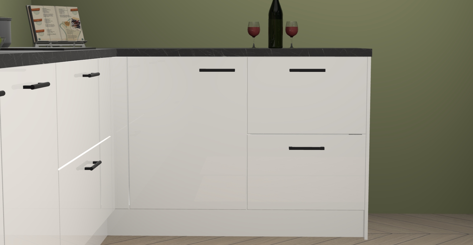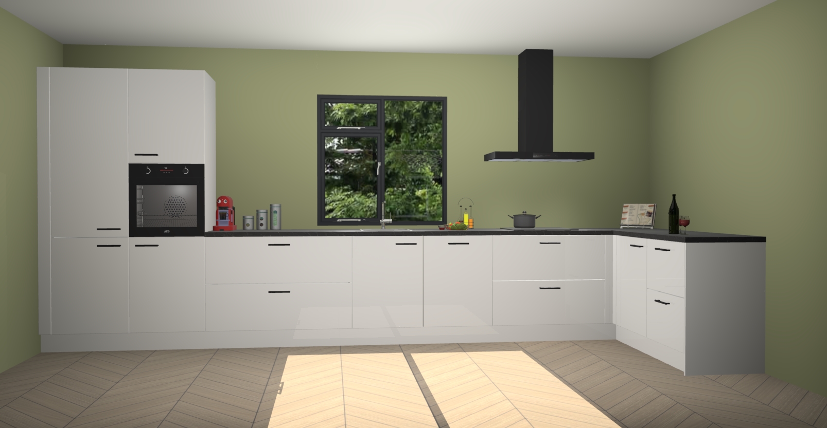 De Zijdegrijze hoogglans keuken Lille wordt geleverd met vijf inbouwapparaten - een oven, inductiekookplaat, afzuigkap, vaatwasser en koelkast. Maar dat is nog niet alles! Na bestelling kunnen deze apparaten eenvoudig worden geüpgraded naar premium AEG-apparatuur. Bovendien is er zelfs de optie om de oven te vervangen door een combimagnetron of uw inductiekookplaat te vervangen door een kookplaat met geïntegreerde afzuiging.