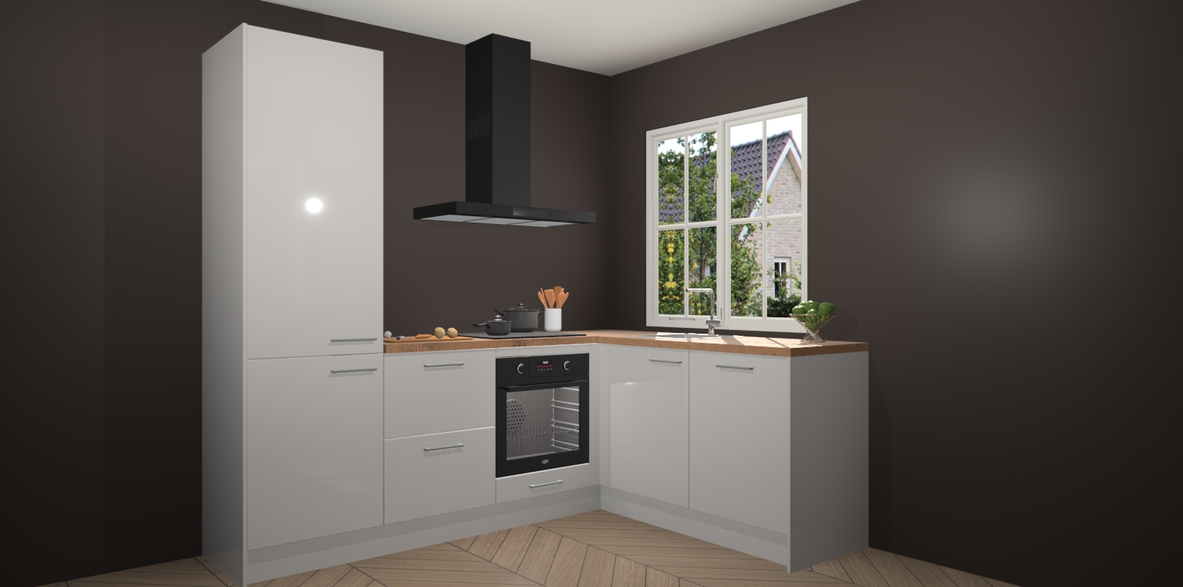 De Zijdegrijze hoogglans keuken Linz is de perfecte keuze voor uw nieuwe moderne en tijdloze keuken. Ga voor moderne en tijdloze elegantie in uw keuken. De prachtige hoekkeuken biedt een verfrissende kijk op de manier waarop we ons vertrouwde keukenontwerp kunnen aanpassen in een nieuwe stijl. Één blik om alles te zien: zo mooi dat het bijna magisch lijkt.
