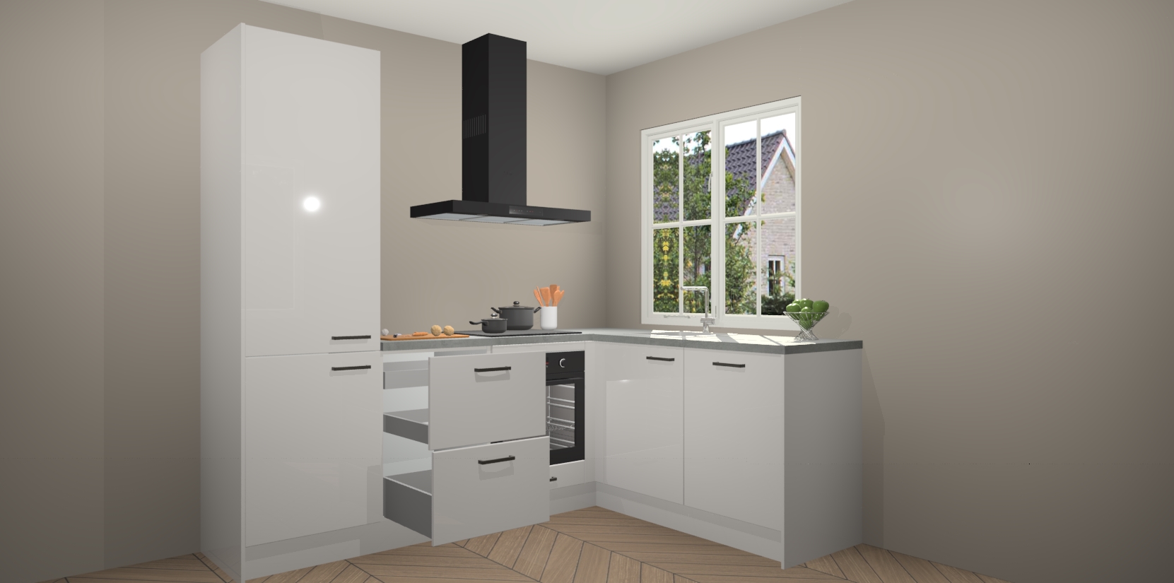 De Zijdegrijze hoogglans keuken Linz is de perfecte keuze voor uw nieuwe moderne en tijdloze keuken. Ga voor moderne en tijdloze elegantie in uw keuken. De prachtige hoekkeuken biedt een verfrissende kijk op de manier waarop we ons vertrouwde keukenontwerp kunnen aanpassen in een nieuwe stijl. Één blik om alles te zien: zo mooi dat het bijna magisch lijkt.