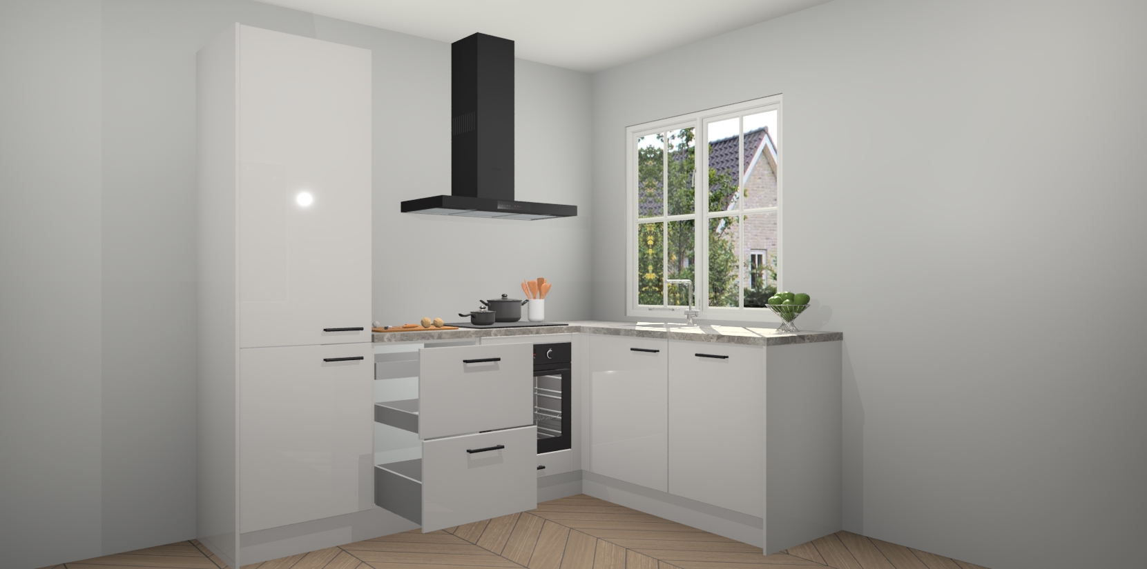 De Zijdegrijze hoogglans keuken Linz is de perfecte keuze voor uw nieuwe moderne en tijdloze keuken. Ga voor moderne en tijdloze elegantie in uw keuken. De prachtige hoekkeuken biedt een verfrissende kijk op de manier waarop we ons vertrouwde keukenontwerp kunnen aanpassen in een nieuwe stijl. Één blik om alles te zien: zo mooi dat het bijna magisch lijkt.