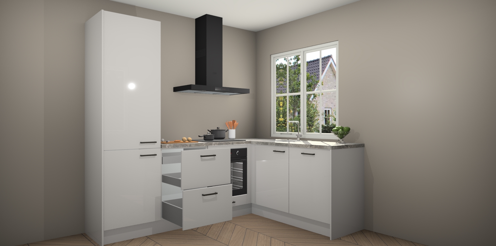 De Zijdegrijze hoogglans keuken Linz is de perfecte keuze voor uw nieuwe moderne en tijdloze keuken. Ga voor moderne en tijdloze elegantie in uw keuken. De prachtige hoekkeuken biedt een verfrissende kijk op de manier waarop we ons vertrouwde keukenontwerp kunnen aanpassen in een nieuwe stijl.  Één blik om alles te zien: zo mooi dat het bijna magisch lijkt.