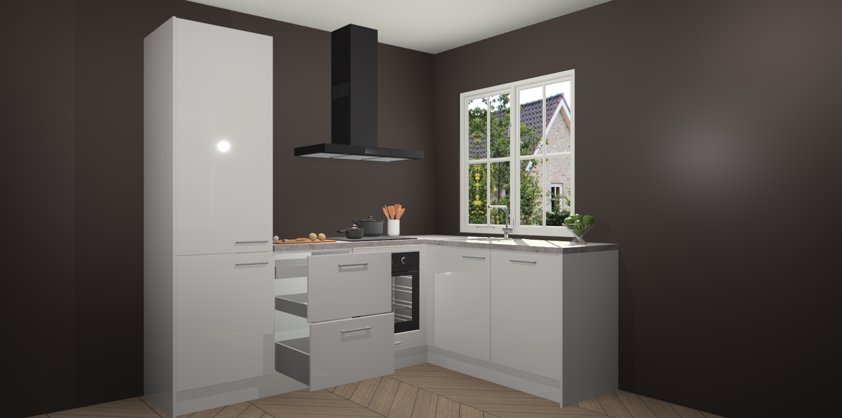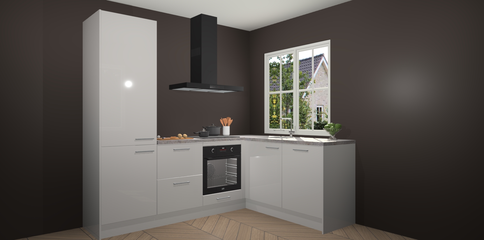 De Zijdegrijze hoogglans keuken Linz is de perfecte keuze voor uw nieuwe moderne en tijdloze keuken. Ga voor moderne en tijdloze elegantie in uw keuken. De prachtige hoekkeuken biedt een verfrissende kijk op de manier waarop we ons vertrouwde keukenontwerp kunnen aanpassen in een nieuwe stijl.  Één blik om alles te zien: zo mooi dat het bijna magisch lijkt.