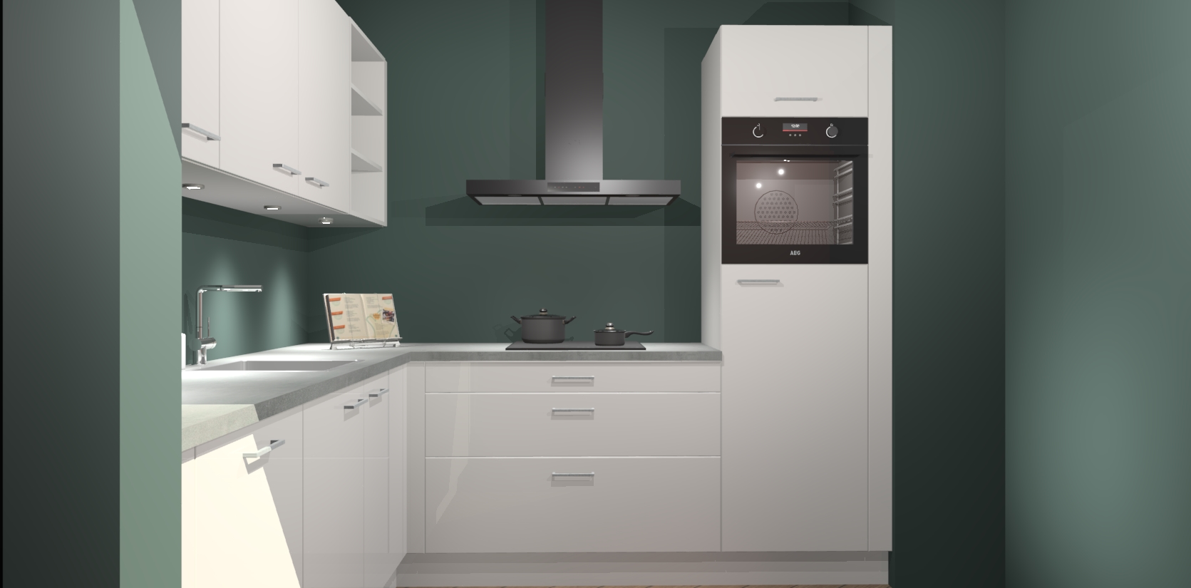 Met een modern, tijdloos design en ruime opslagruimte, zult u zich in no-time thuis voelen in uw nieuwe keuken. Uw leven wordt eenvoudiger met de soft-close deuren die voor het ultieme stille comfort zorgen - geen geluid dat u stoort terwijl u kookt. Ook is de keuken voorzien van 5 ingebouwde apparaten: een oven, inductie kookplaat, afzuigkap, vaatwasser en koelkast. Deze kunnen gemakkelijk na bestelling worden bijgewerkt naar AEG - waardoor uw luxe ervaring compleet is.