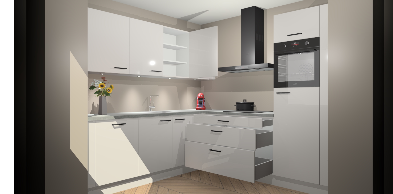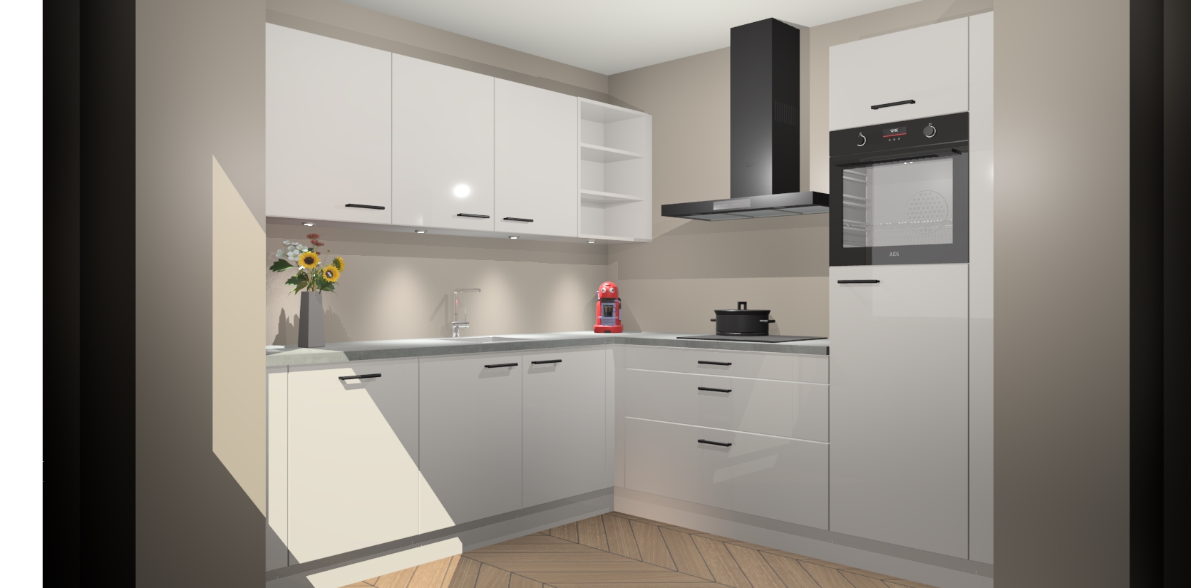 Met een modern, tijdloos design en ruime opslagruimte, zult u zich in no-time thuis voelen in uw nieuwe keuken. Uw leven wordt eenvoudiger met de soft-close deuren die voor het ultieme stille comfort zorgen - geen geluid dat u stoort terwijl u kookt. Ook is de keuken voorzien van 5 ingebouwde apparaten: een oven, inductie kookplaat, afzuigkap, vaatwasser en koelkast. Deze kunnen gemakkelijk na bestelling worden bijgewerkt naar AEG - waardoor uw luxe ervaring compleet is.