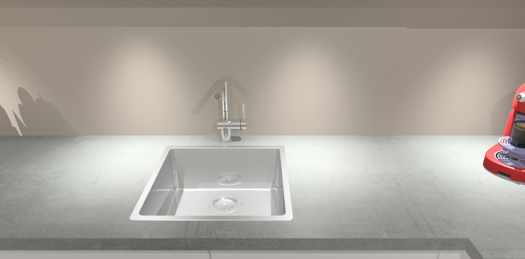 - De spoelbak is nog niet in gevreesd, dit dient tijdens het werk gedaan te worden