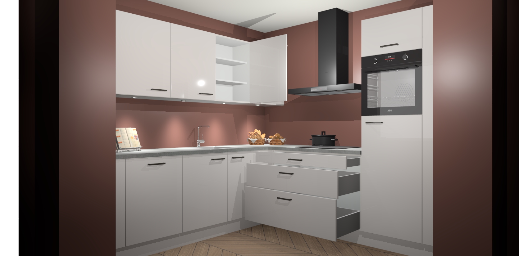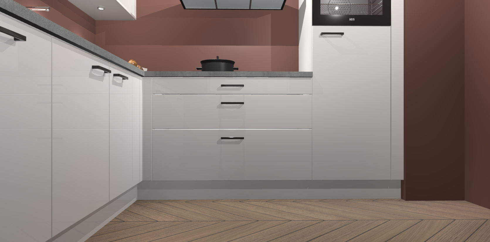 Met een modern, tijdloos design en ruime opslagruimte, zult u zich in no-time thuis voelen in uw nieuwe keuken. Uw leven wordt eenvoudiger met de soft-close deuren die voor het ultieme stille comfort zorgen - geen geluid dat u stoort terwijl u kookt. Ook is de keuken voorzien van 5 ingebouwde apparaten: een oven, inductie kookplaat, afzuigkap, vaatwasser en koelkast. Deze kunnen gemakkelijk na bestelling worden bijgewerkt naar AEG - waardoor uw luxe ervaring compleet is.