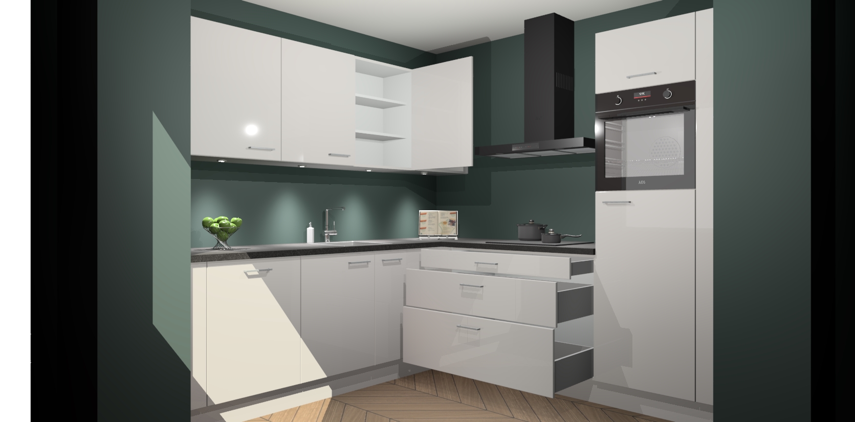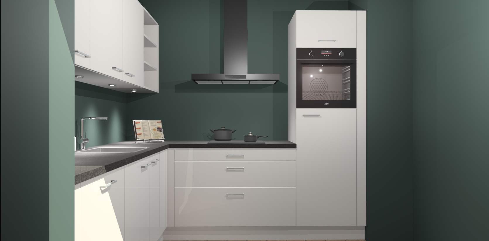 Met een modern, tijdloos design en ruime opslagruimte, zult u zich in no-time thuis voelen in uw nieuwe keuken. Uw leven wordt eenvoudiger met de soft-close deuren die voor het ultieme stille comfort zorgen - geen geluid dat u stoort terwijl u kookt. Ook is de keuken voorzien van 5 ingebouwde apparaten: een oven, inductie kookplaat, afzuigkap, vaatwasser en koelkast. Deze kunnen gemakkelijk na bestelling worden bijgewerkt naar AEG - waardoor uw luxe ervaring compleet is.