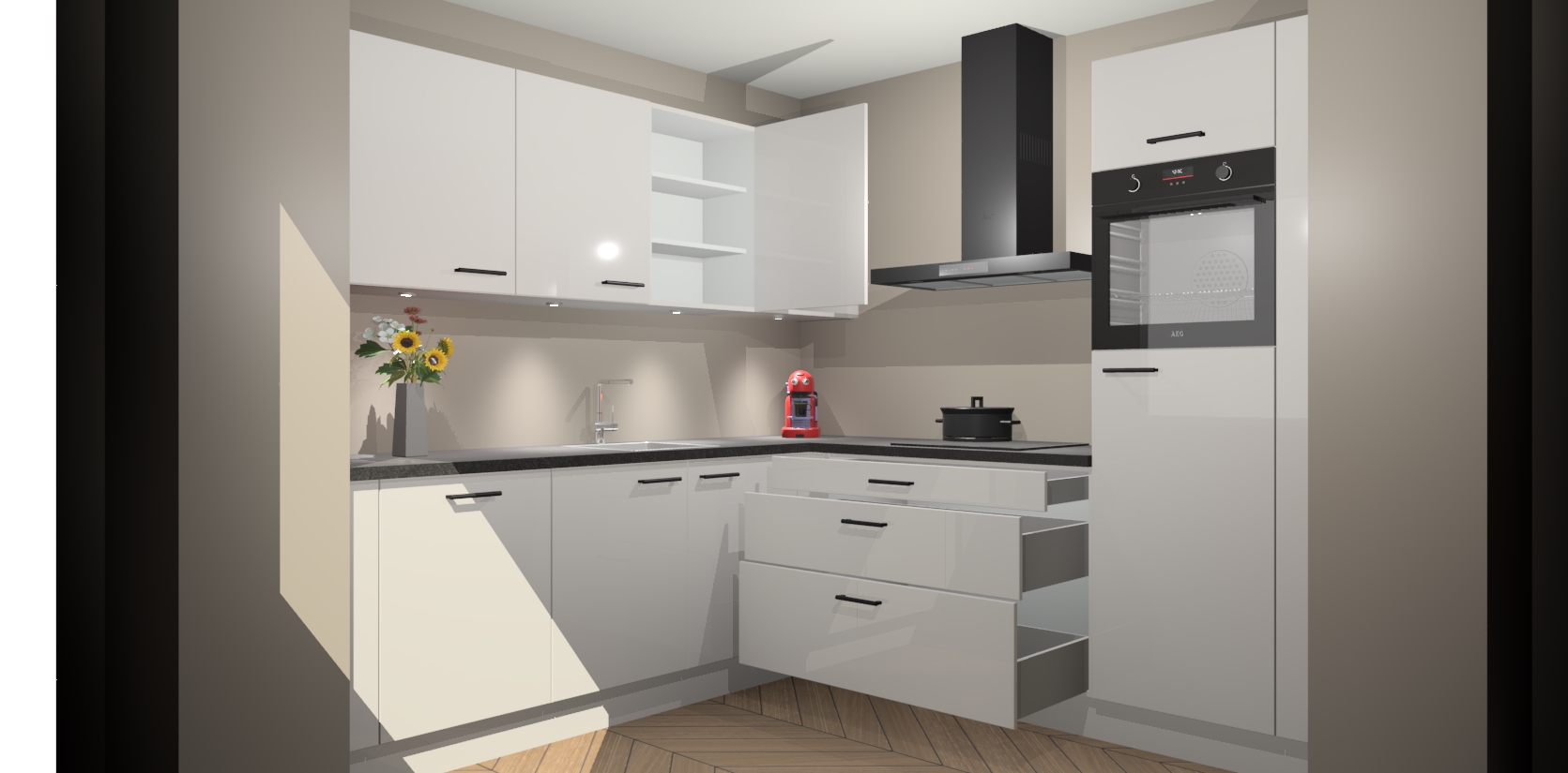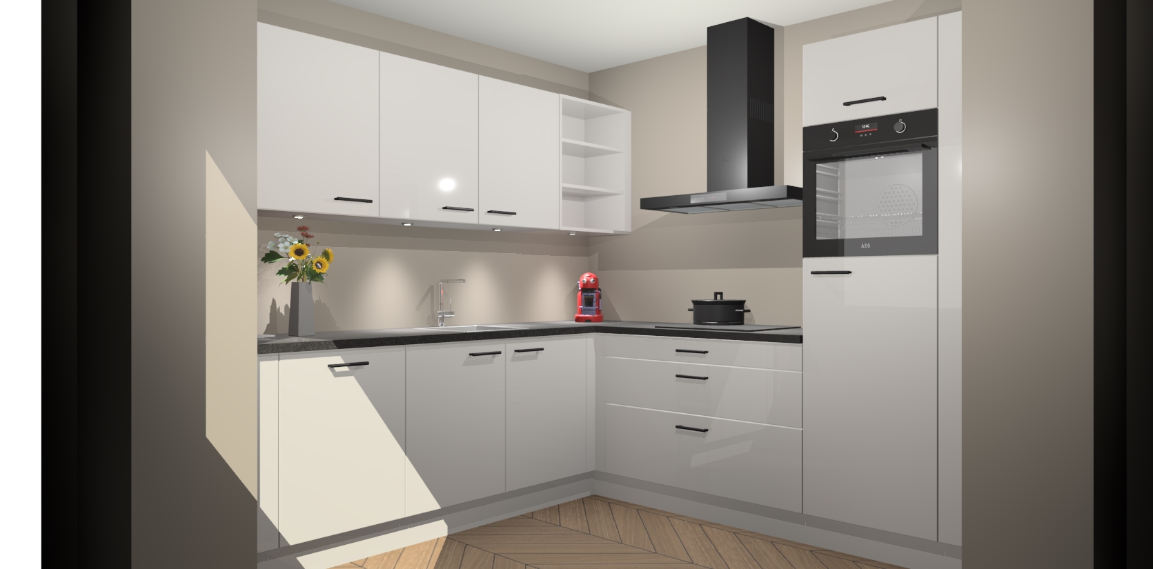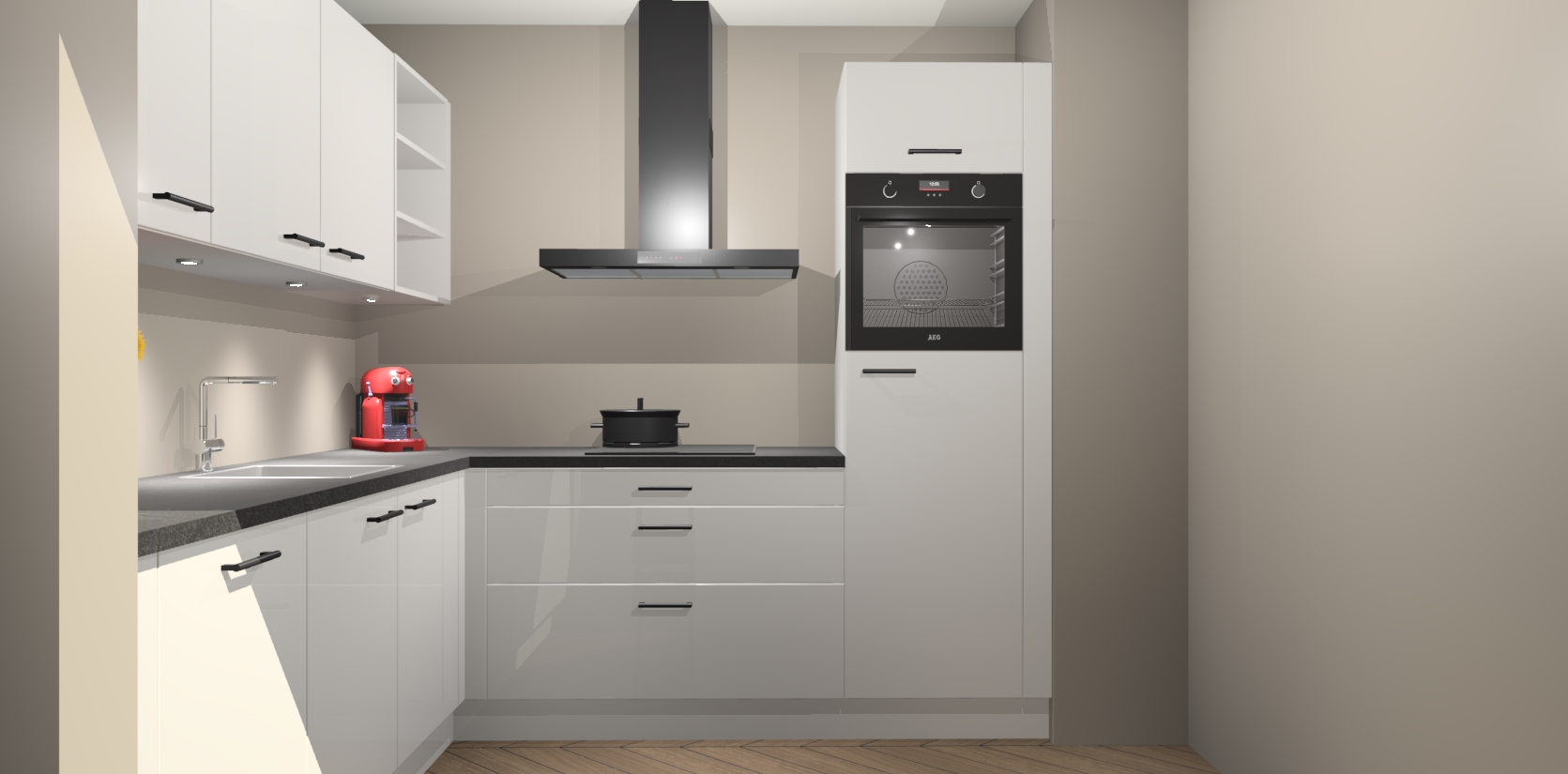 Met een modern, tijdloos design en ruime opslagruimte, zult u zich in no-time thuis voelen in uw nieuwe keuken. Uw leven wordt eenvoudiger met de soft-close deuren die voor het ultieme stille comfort zorgen - geen geluid dat u stoort terwijl u kookt. Ook is de keuken voorzien van 5 ingebouwde apparaten: een oven, inductie kookplaat, afzuigkap, vaatwasser en koelkast. Deze kunnen gemakkelijk na bestelling worden bijgewerkt naar AEG - waardoor uw luxe ervaring compleet is.