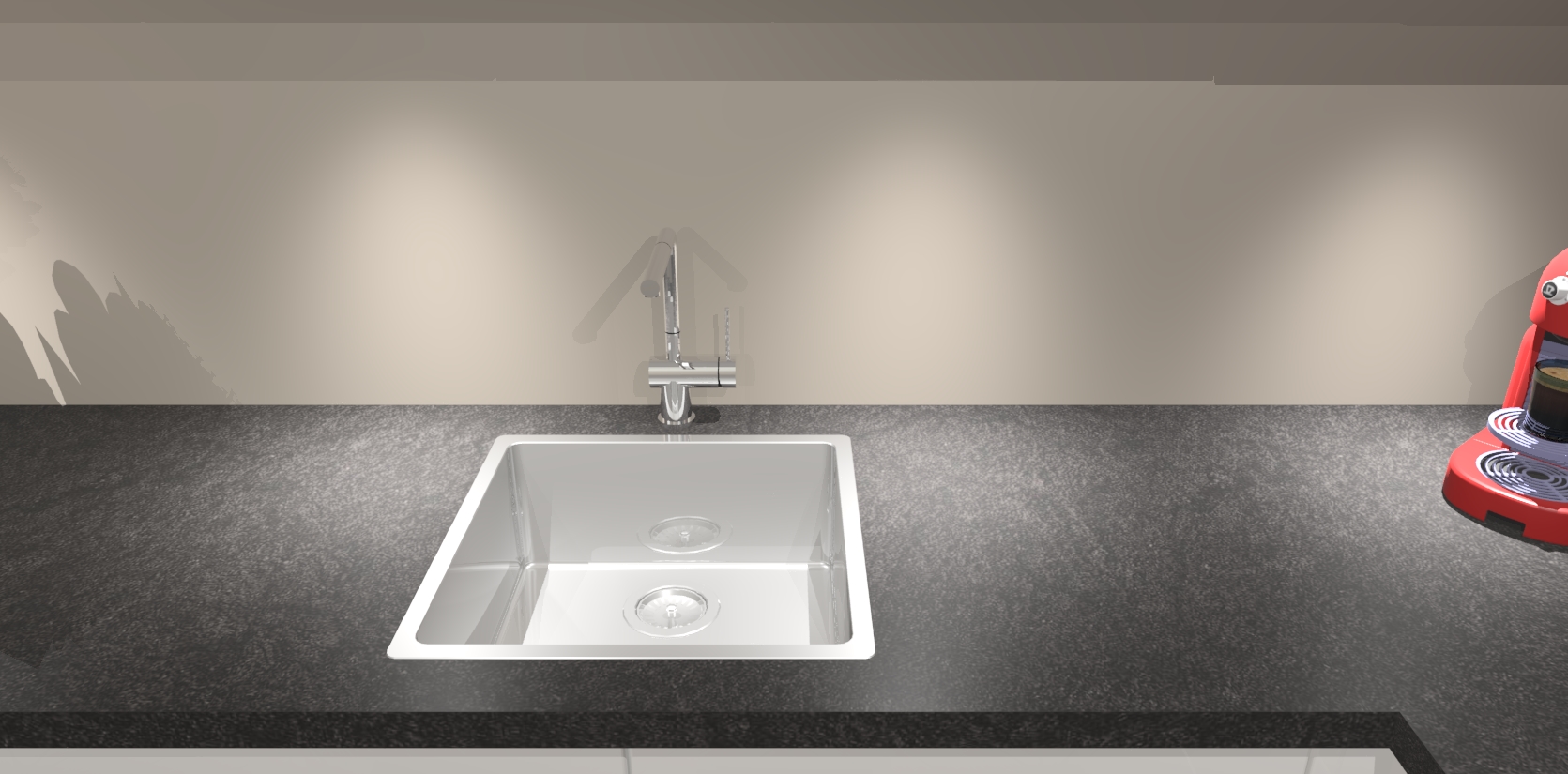 - De spoelbak is nog niet in gevreesd, dit dient tijdens het werk gedaan te worden