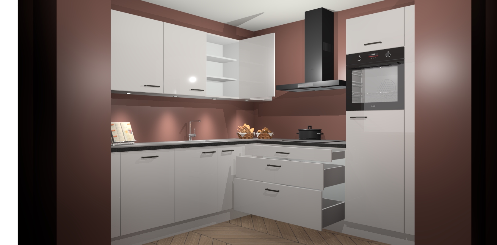 Met een modern, tijdloos design en ruime opslagruimte, zult u zich in no-time thuis voelen in uw nieuwe keuken. Uw leven wordt eenvoudiger met de soft-close deuren die voor het ultieme stille comfort zorgen - geen geluid dat u stoort terwijl u kookt. Ook is de keuken voorzien van 5 ingebouwde apparaten: een oven, inductie kookplaat, afzuigkap, vaatwasser en koelkast. Deze kunnen gemakkelijk na bestelling worden bijgewerkt naar AEG - waardoor uw luxe ervaring compleet is.