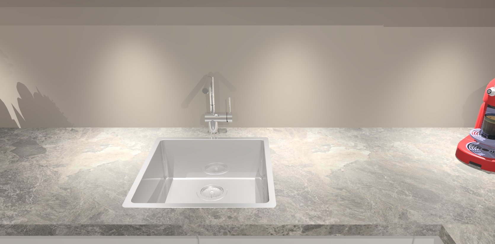- De spoelbak is nog niet in gevreesd, dit dient tijdens het werk gedaan te worden