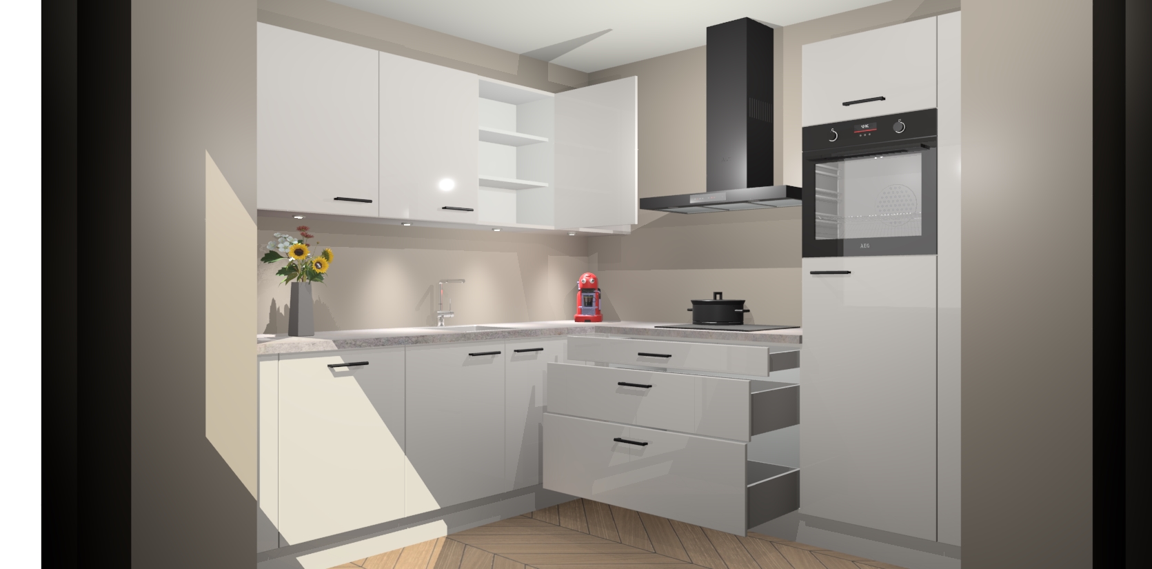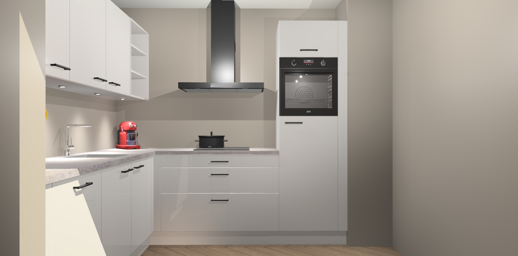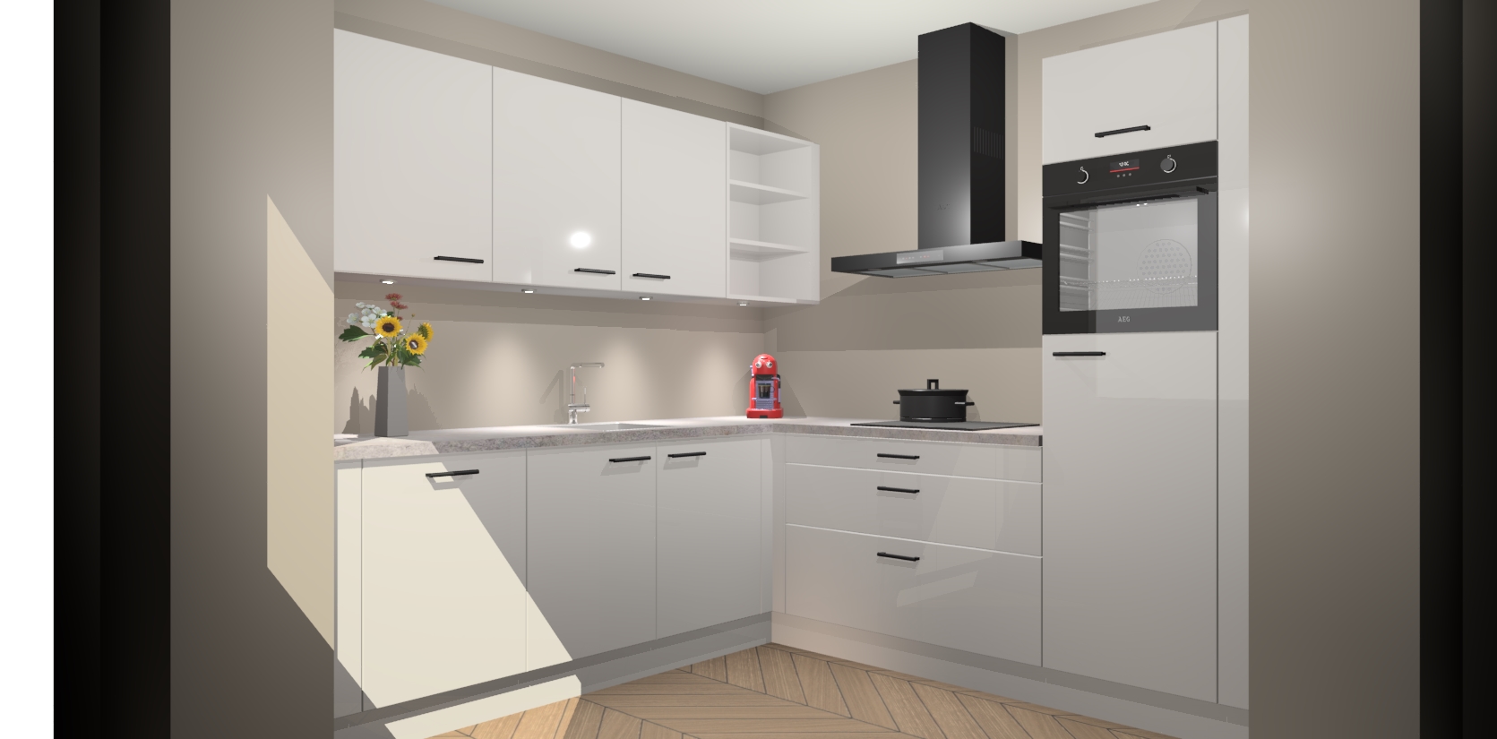 Met een modern, tijdloos design en ruime opslagruimte, zult u zich in no-time thuis voelen in uw nieuwe keuken. Uw leven wordt eenvoudiger met de soft-close deuren die voor het ultieme stille comfort zorgen - geen geluid dat u stoort terwijl u kookt. Ook is de keuken voorzien van 5 ingebouwde apparaten: een oven, inductie kookplaat, afzuigkap, vaatwasser en koelkast. Deze kunnen gemakkelijk na bestelling worden bijgewerkt naar AEG - waardoor uw luxe ervaring compleet is.