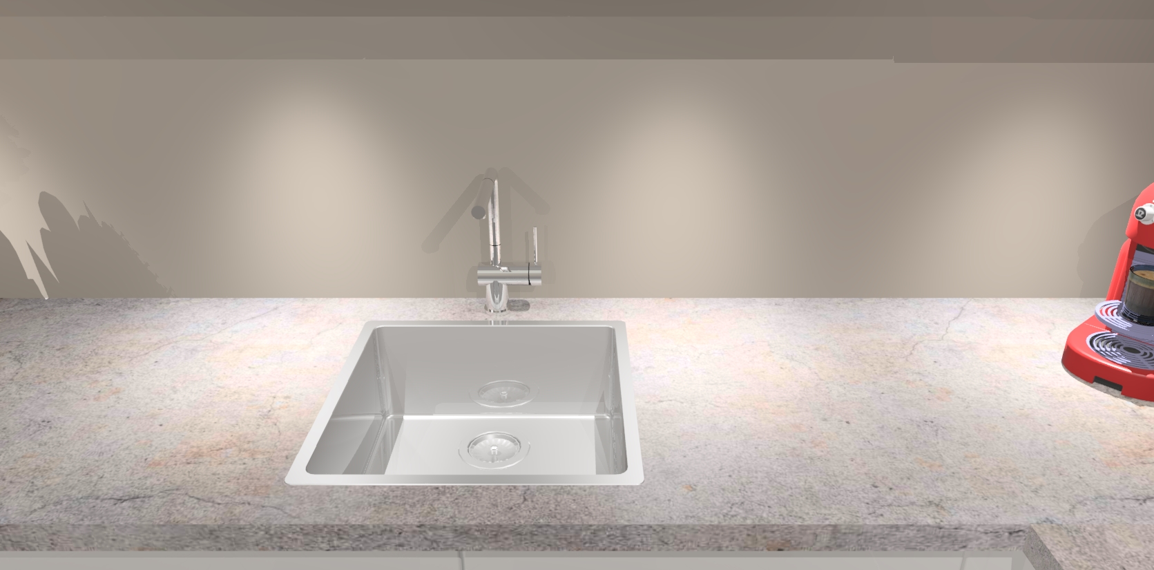- De spoelbak is nog niet in gevreesd, dit dient tijdens het werk gedaan te worden