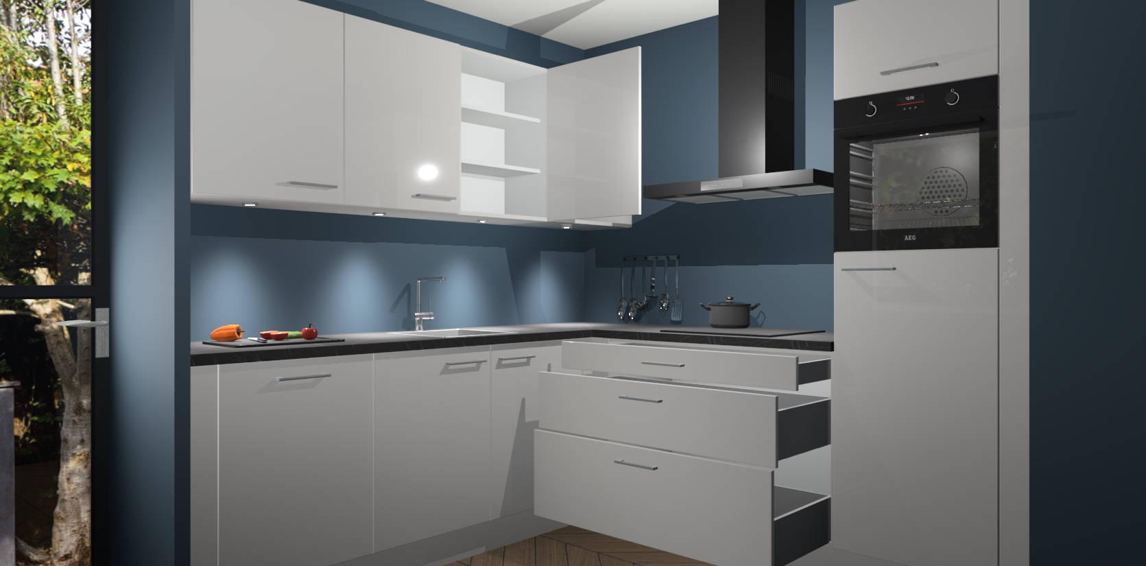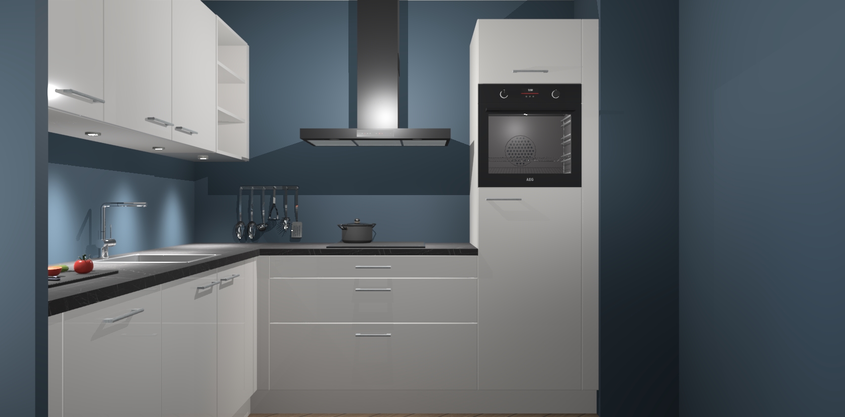 Met een modern, tijdloos design en ruime opslagruimte, zult u zich in no-time thuis voelen in uw nieuwe keuken. Uw leven wordt eenvoudiger met de soft-close deuren die voor het ultieme stille comfort zorgen - geen geluid dat u stoort terwijl u kookt. Ook is de keuken voorzien van 5 ingebouwde apparaten: een oven, inductie kookplaat, afzuigkap, vaatwasser en koelkast. Deze kunnen gemakkelijk na bestelling worden bijgewerkt naar AEG - waardoor uw luxe ervaring compleet is.