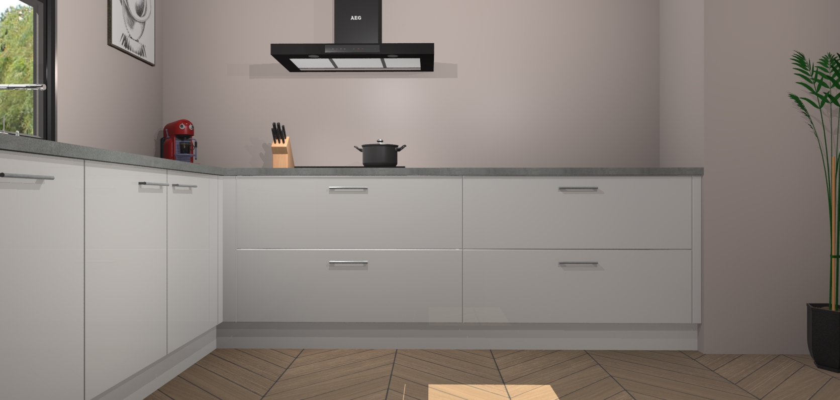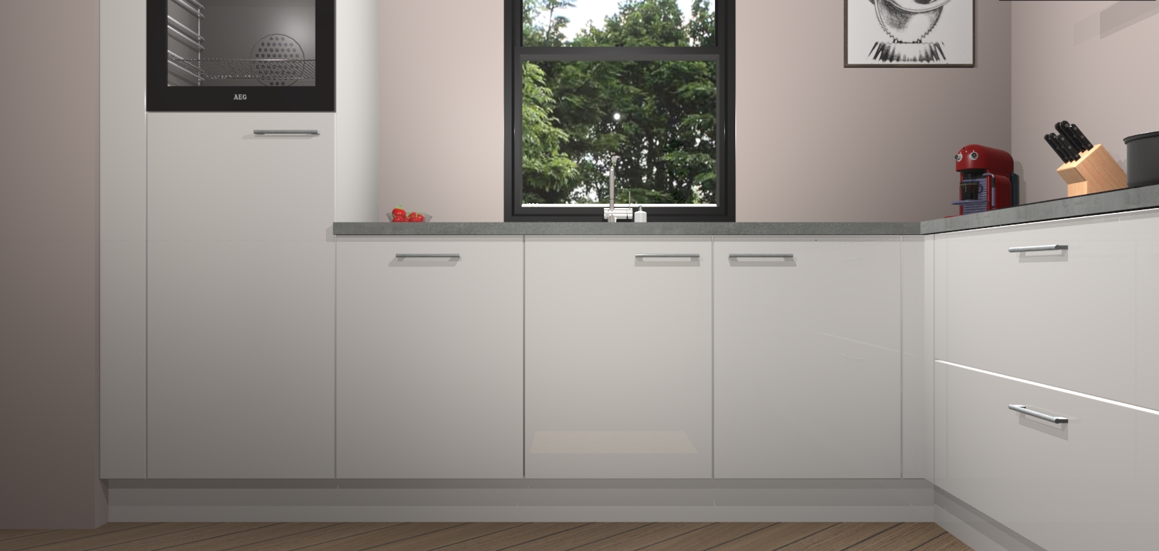 Welkom bij de zijdegrijze hoogglans keuken Lublin. Deze prachtige keuken zal de komende jaren het middelpunt van de belangstelling in uw huis zijn. Uitgerust met vijf inbouwapparaten komt u nooit kookgereedschap tekort. Bovendien geeft de warme houtlook elke ruimte een uitnodigende en tijdloze uitstraling.