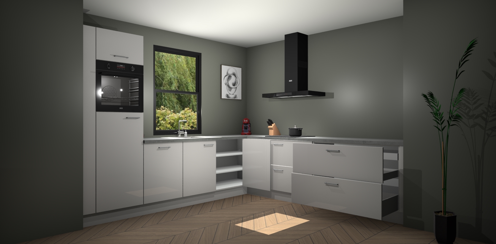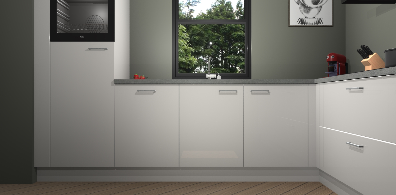 Welkom bij de zijdegrijze hoogglans keuken Lublin. Deze prachtige keuken zal de komende jaren het middelpunt van de belangstelling in uw huis zijn. Uitgerust met vijf inbouwapparaten komt u nooit kookgereedschap tekort. Bovendien geeft de warme houtlook elke ruimte een uitnodigende en tijdloze uitstraling.