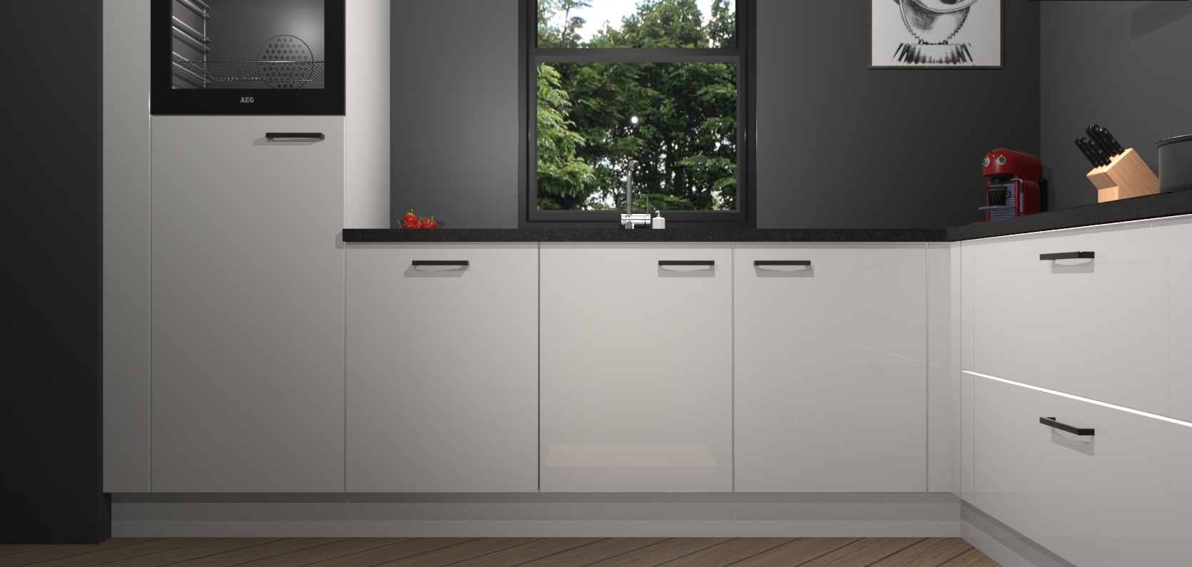 Welkom bij de zijdegrijze hoogglans keuken Lublin. Deze prachtige keuken zal de komende jaren het middelpunt van de belangstelling in uw huis zijn. Uitgerust met vijf inbouwapparaten komt u nooit kookgereedschap tekort. Bovendien geeft de warme houtlook elke ruimte een uitnodigende en tijdloze uitstraling.