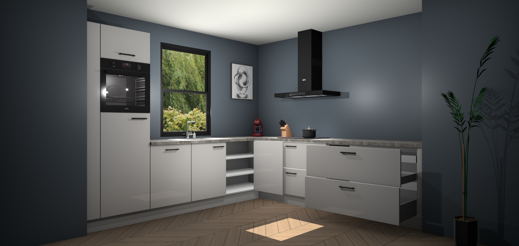Inclusief plinten, stelpoten en werkblad