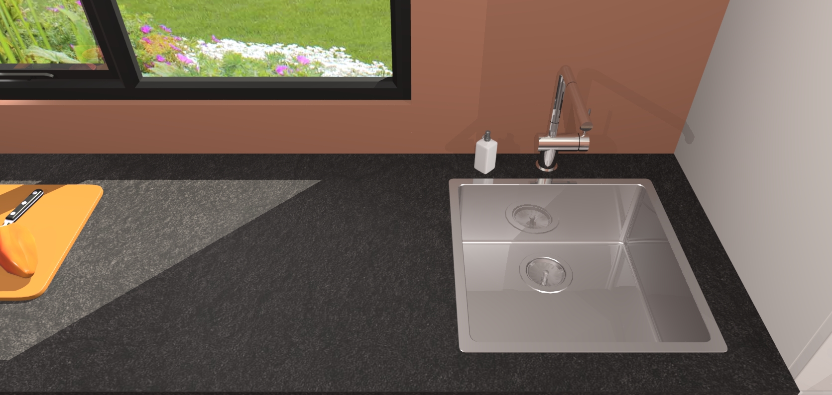 - De spoelbak is nog niet in gevreesd. Dit dient tijdens het werk gedaan te worden