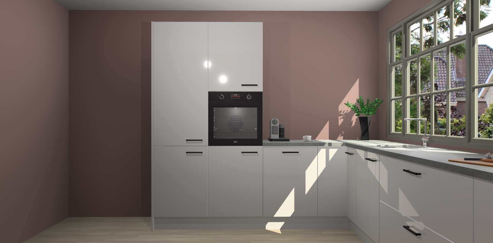 Kom dichtbij de perfecte keuken van uw dromen met de Zijdegrijze hoogglans keuken Malaga. Met een prachtige houtlook en eigentijds ontwerp, straalt deze keuken warmte en sfeer uit. Of u nu liefhebber bent van traditionele of moderne stijlen, er is genoeg ruimte om aan al uw behoeften te voldoen.