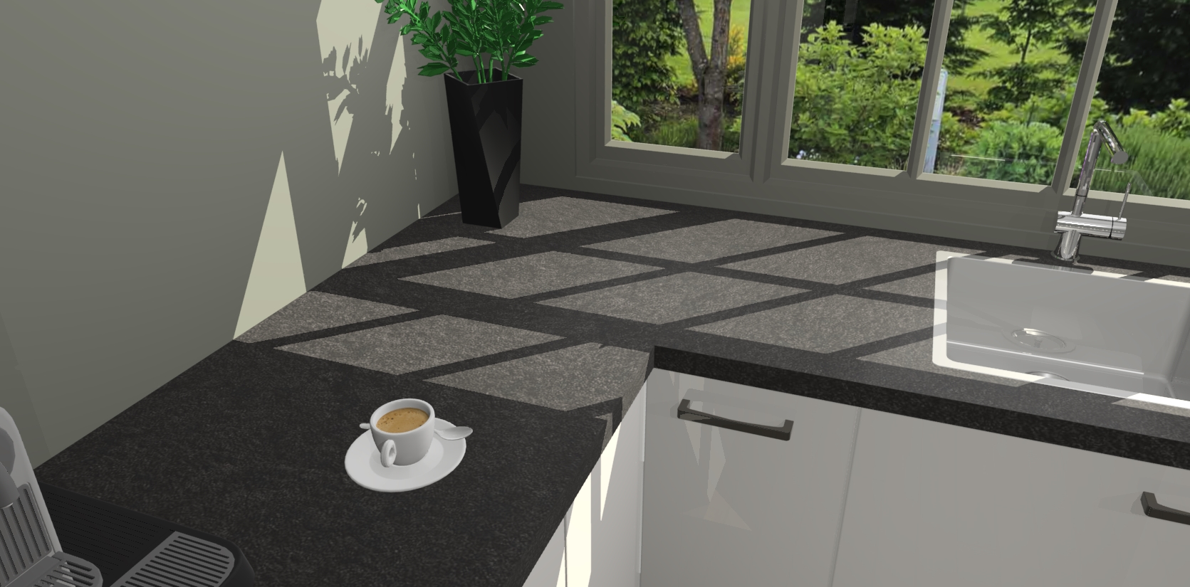 • Bij een hoekwerkblad zijn de hoeken in gevreesd en op maat gemaakt
