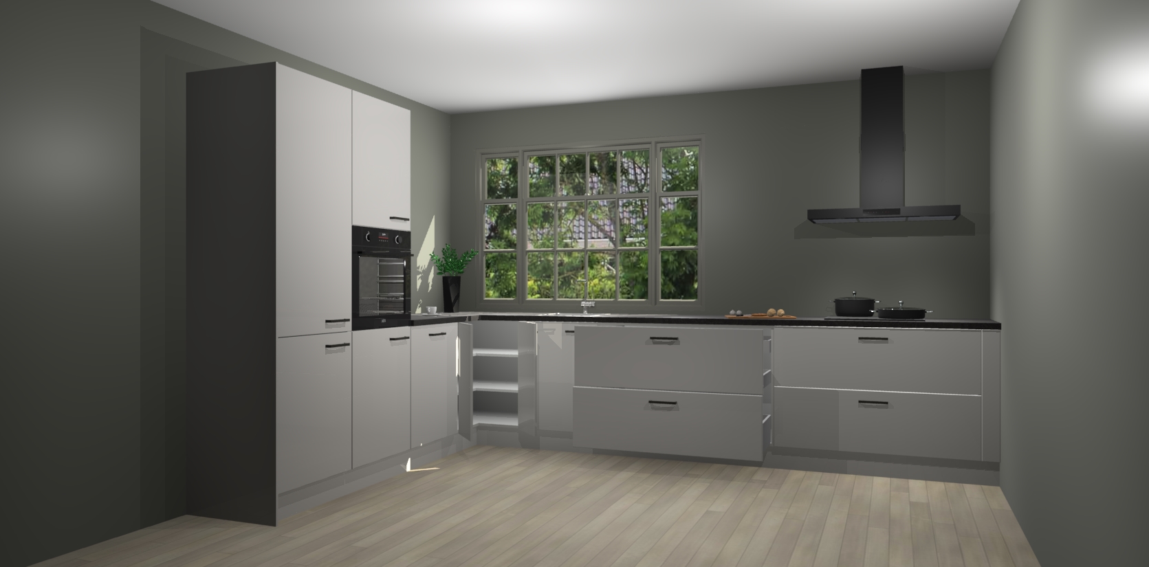 Kom dichtbij de perfecte keuken van uw dromen met de Zijdegrijze hoogglans keuken Malaga. Met een prachtige houtlook en eigentijds ontwerp, straalt deze keuken warmte en sfeer uit. Of u nu liefhebber bent van traditionele of moderne stijlen, er is genoeg ruimte om aan al uw behoeften te voldoen.