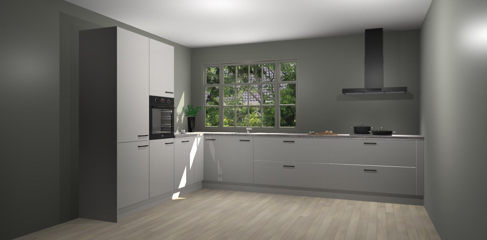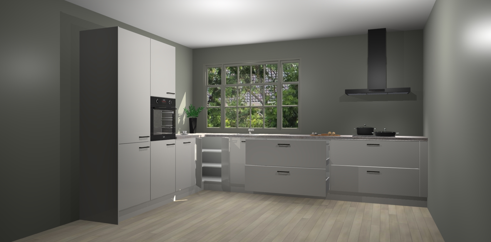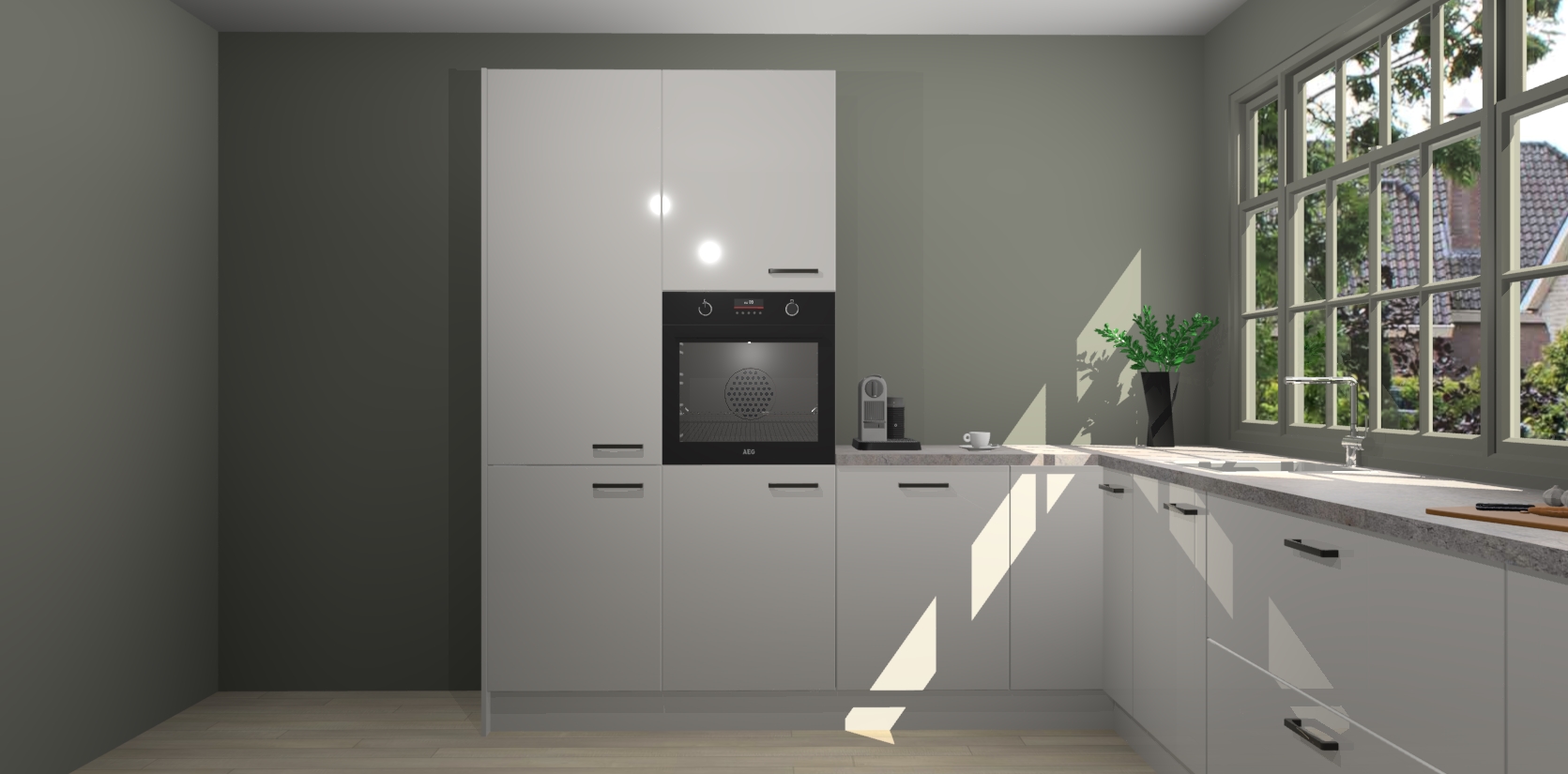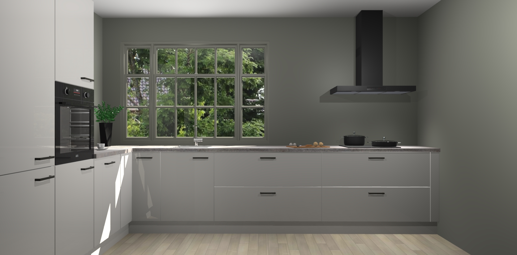 Kom dichtbij de perfecte keuken van uw dromen met de Zijdegrijze hoogglans keuken Malaga. Met een prachtige houtlook en eigentijds ontwerp, straalt deze keuken warmte en sfeer uit. Of u nu liefhebber bent van traditionele of moderne stijlen, er is genoeg ruimte om aan al uw behoeften te voldoen.