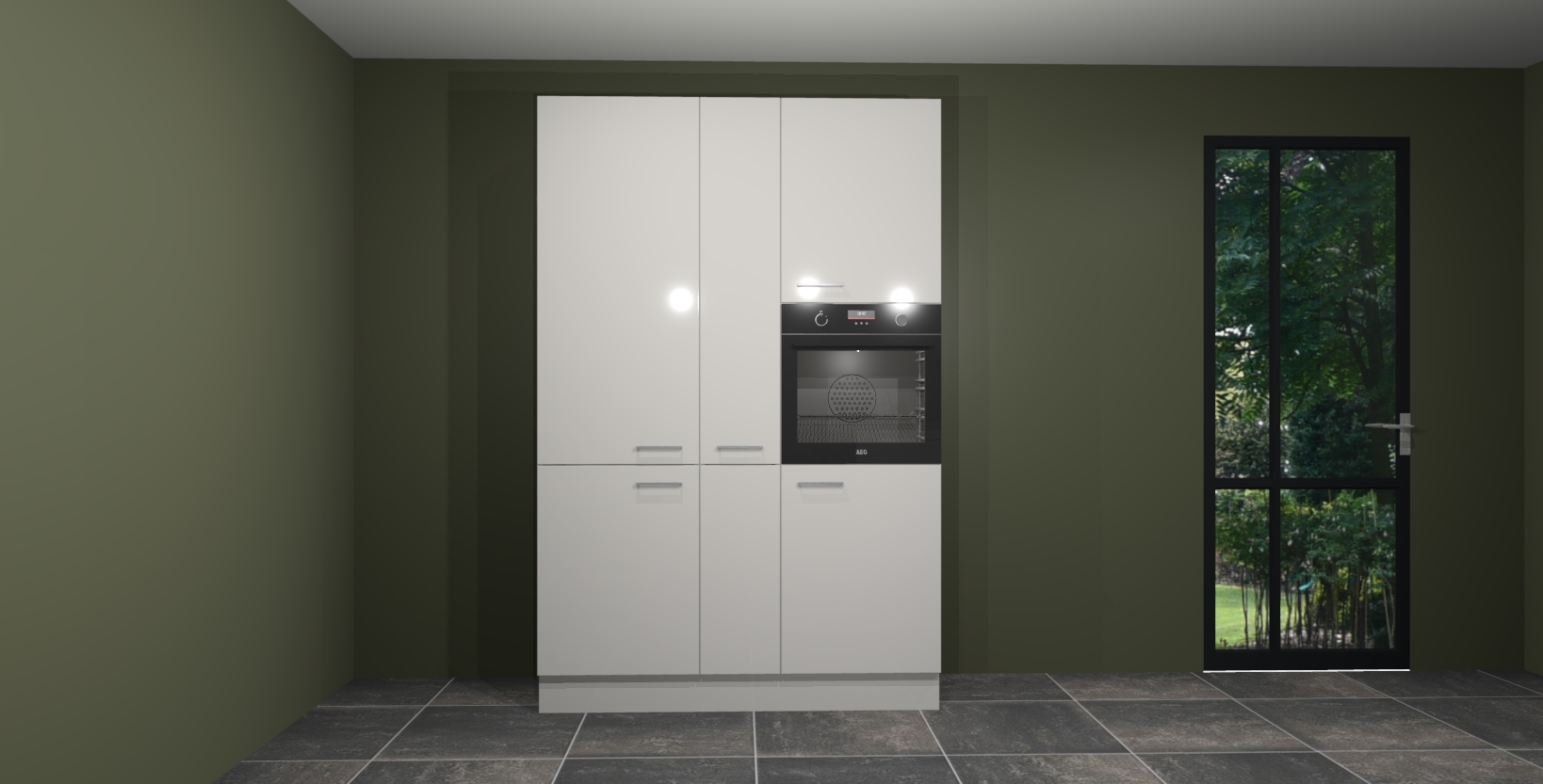 Met een modern, tijdloos design en ruime opslagruimte, zult u zich in no-time thuis voelen in uw nieuwe keuken. Uw leven wordt eenvoudiger met de soft-close deuren die voor het ultieme stille comfort zorgen - geen geluid dat u stoort terwijl u kookt. Ook is de keuken voorzien van 5 ingebouwde apparaten: een oven, inductie kookplaat, afzuigkap, vaatwasser en koelkast. Deze kunnen gemakkelijk na bestelling worden bijgewerkt naar AEG - waardoor uw luxe ervaring compleet is.