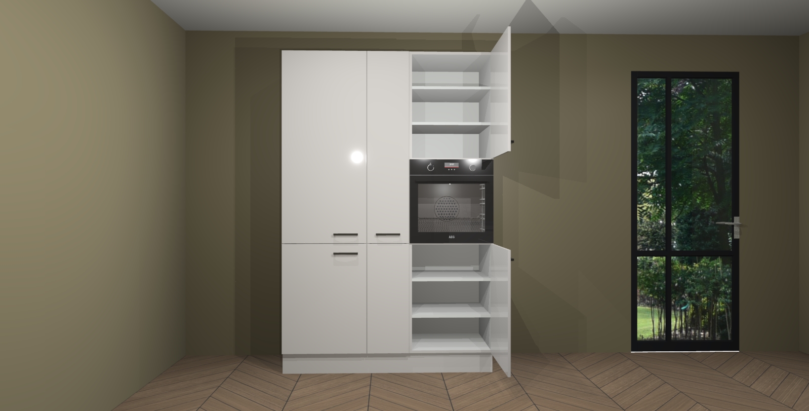 Met een modern, tijdloos design en ruime opslagruimte, zult u zich in no-time thuis voelen in uw nieuwe keuken. Uw leven wordt eenvoudiger met de soft-close deuren die voor het ultieme stille comfort zorgen - geen geluid dat u stoort terwijl u kookt. Ook is de keuken voorzien van 5 ingebouwde apparaten: een oven, inductie kookplaat, afzuigkap, vaatwasser en koelkast. Deze kunnen gemakkelijk na bestelling worden bijgewerkt naar AEG - waardoor uw luxe ervaring compleet is.