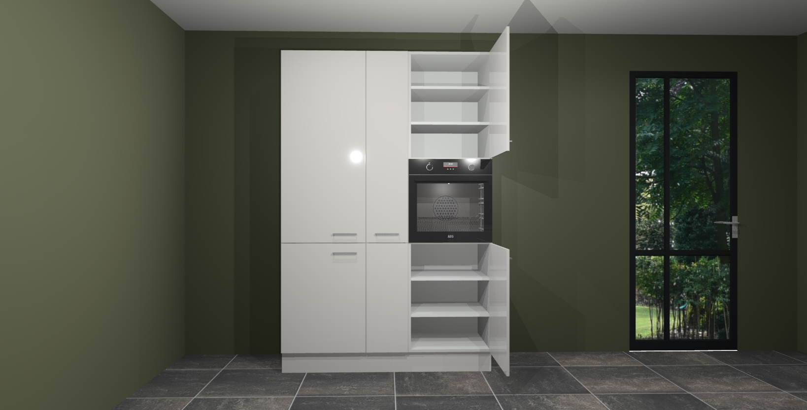 Met een modern, tijdloos design en ruime opslagruimte, zult u zich in no-time thuis voelen in uw nieuwe keuken. Uw leven wordt eenvoudiger met de soft-close deuren die voor het ultieme stille comfort zorgen - geen geluid dat u stoort terwijl u kookt. Ook is de keuken voorzien van 5 ingebouwde apparaten: een oven, inductie kookplaat, afzuigkap, vaatwasser en koelkast. Deze kunnen gemakkelijk na bestelling worden bijgewerkt naar AEG - waardoor uw luxe ervaring compleet is.