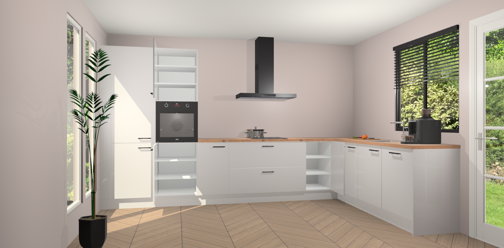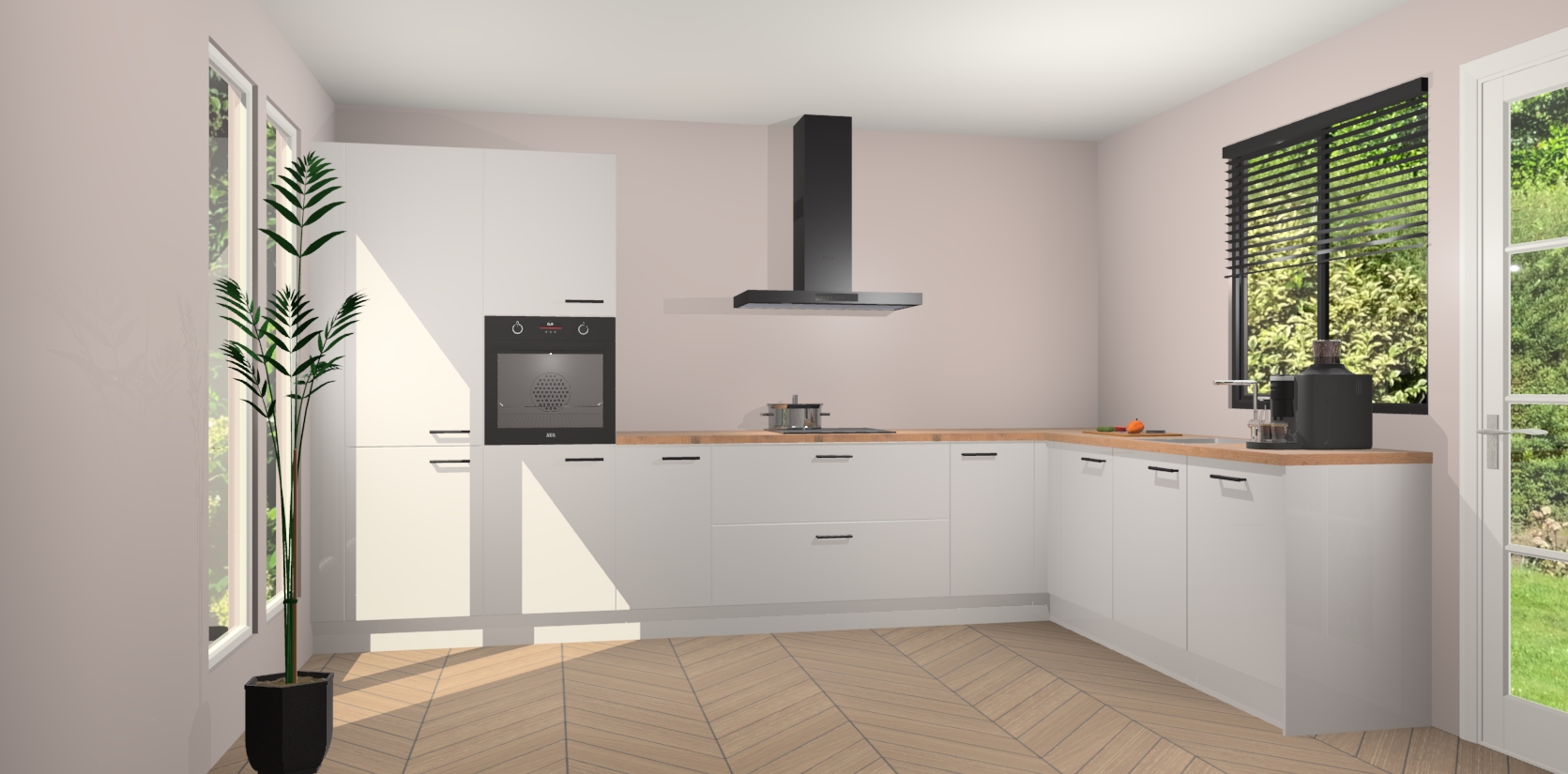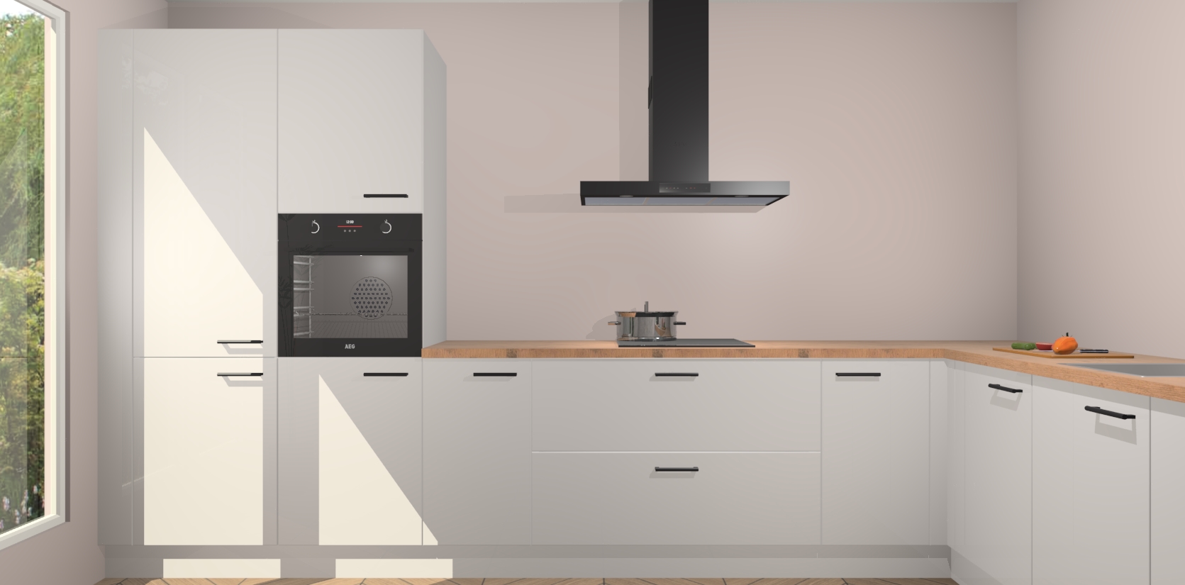 Met een modern, tijdloos design en ruime opslagruimte, zult u zich in no-time thuis voelen in uw nieuwe keuken. Uw leven wordt eenvoudiger met de soft-close deuren die voor het ultieme stille comfort zorgen - geen geluid dat u stoort terwijl u kookt. Ook is de keuken voorzien van 5 ingebouwde apparaten: een oven, inductie kookplaat, afzuigkap, vaatwasser en koelkast. Deze kunnen gemakkelijk na bestelling worden bijgewerkt naar AEG - waardoor uw luxe ervaring compleet is.