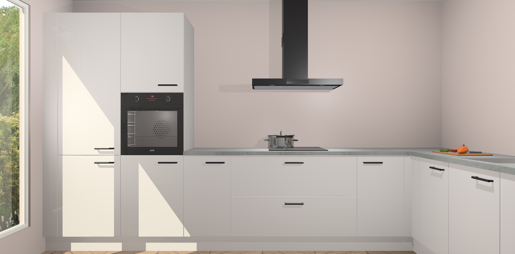 Met een modern, tijdloos design en ruime opslagruimte, zult u zich in no-time thuis voelen in uw nieuwe keuken. Uw leven wordt eenvoudiger met de soft-close deuren die voor het ultieme stille comfort zorgen - geen geluid dat u stoort terwijl u kookt. Ook is de keuken voorzien van 5 ingebouwde apparaten: een oven, inductie kookplaat, afzuigkap, vaatwasser en koelkast. Deze kunnen gemakkelijk na bestelling worden bijgewerkt naar AEG - waardoor uw luxe ervaring compleet is.