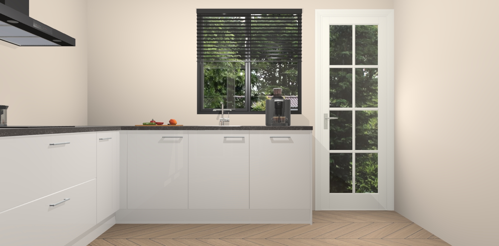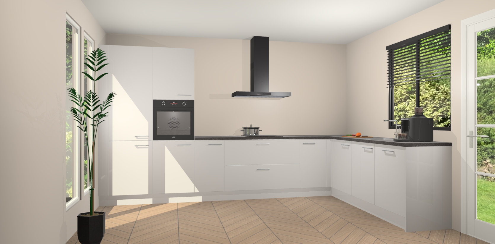 Met een modern, tijdloos design en ruime opslagruimte, zult u zich in no-time thuis voelen in uw nieuwe keuken. Uw leven wordt eenvoudiger met de soft-close deuren die voor het ultieme stille comfort zorgen - geen geluid dat u stoort terwijl u kookt. Ook is de keuken voorzien van 5 ingebouwde apparaten: een oven, inductie kookplaat, afzuigkap, vaatwasser en koelkast. Deze kunnen gemakkelijk na bestelling worden bijgewerkt naar AEG - waardoor uw luxe ervaring compleet is.