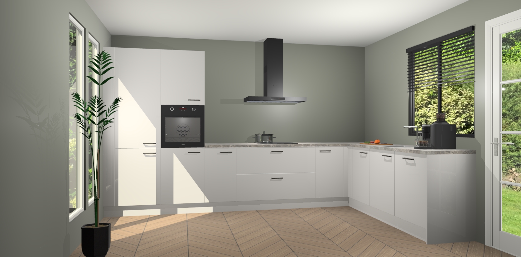 Met een modern, tijdloos design en ruime opslagruimte, zult u zich in no-time thuis voelen in uw nieuwe keuken. Uw leven wordt eenvoudiger met de soft-close deuren die voor het ultieme stille comfort zorgen - geen geluid dat u stoort terwijl u kookt. Ook is de keuken voorzien van 5 ingebouwde apparaten: een oven, inductie kookplaat, afzuigkap, vaatwasser en koelkast. Deze kunnen gemakkelijk na bestelling worden bijgewerkt naar AEG - waardoor uw luxe ervaring compleet is.