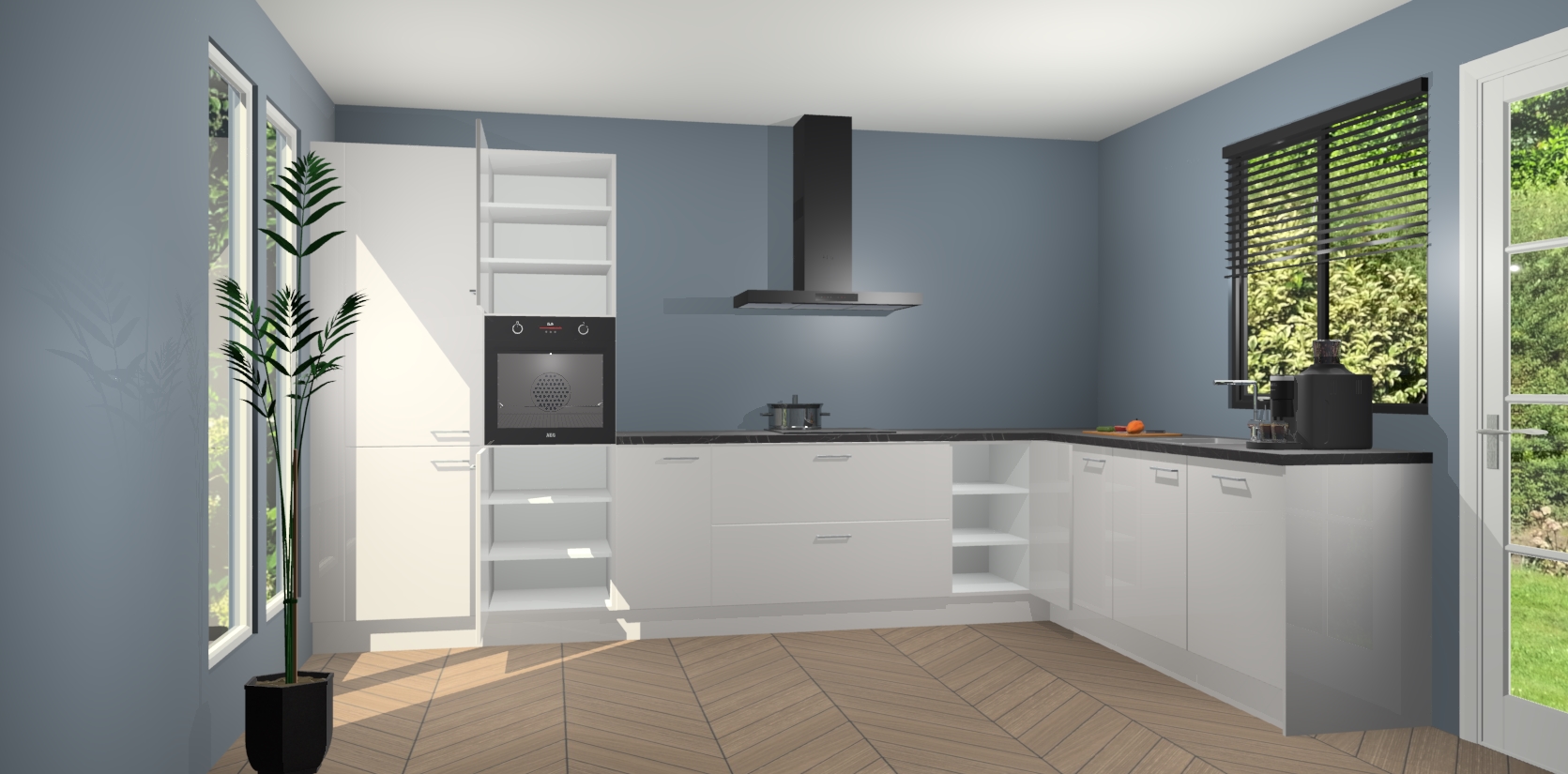 Met een modern, tijdloos design en ruime opslagruimte, zult u zich in no-time thuis voelen in uw nieuwe keuken. Uw leven wordt eenvoudiger met de soft-close deuren die voor het ultieme stille comfort zorgen - geen geluid dat u stoort terwijl u kookt. Ook is de keuken voorzien van 5 ingebouwde apparaten: een oven, inductie kookplaat, afzuigkap, vaatwasser en koelkast. Deze kunnen gemakkelijk na bestelling worden bijgewerkt naar AEG - waardoor uw luxe ervaring compleet is.
