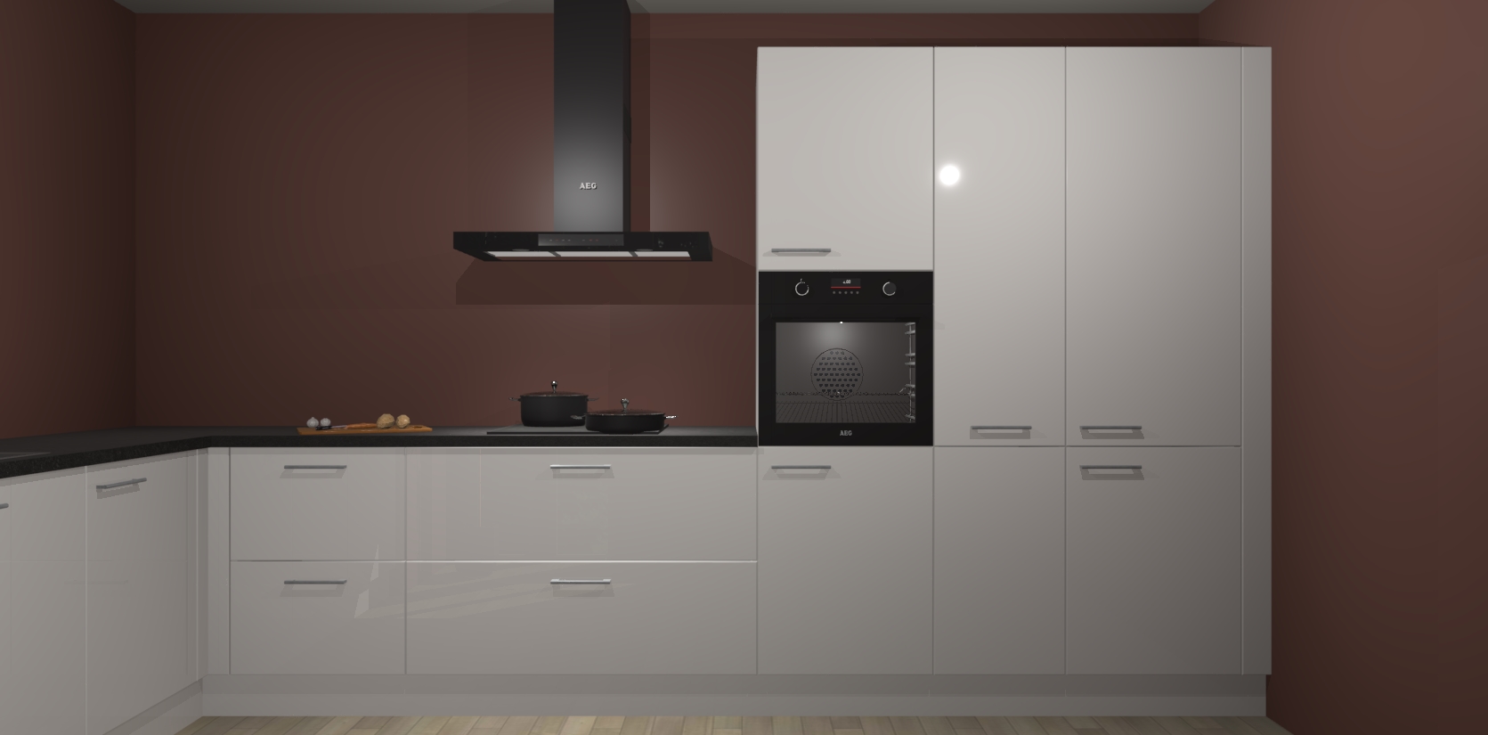 Welkom bij de zijdegrijze hoogglans keuken Nuuk. Deze prachtige keuken zal de komende jaren het middelpunt van de belangstelling in uw huis zijn. Uitgerust met vijf inbouwapparaten komt u nooit kookgereedschap tekort.