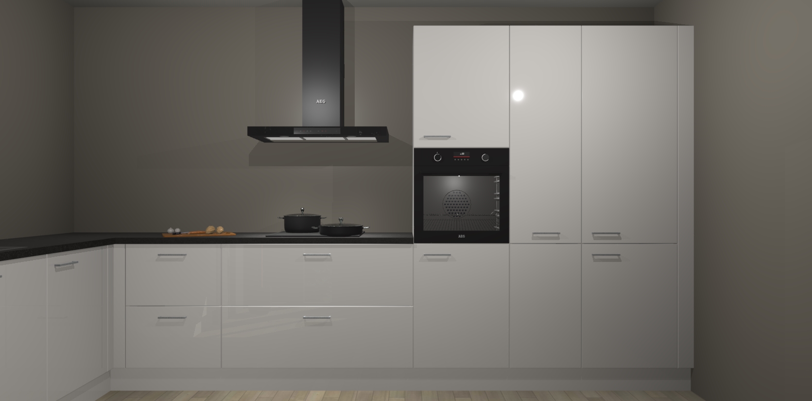 Welkom bij de zijdegrijze hoogglans keuken Nuuk. Deze prachtige keuken zal de komende jaren het middelpunt van de belangstelling in uw huis zijn. Uitgerust met vijf inbouwapparaten komt u nooit kookgereedschap tekort.