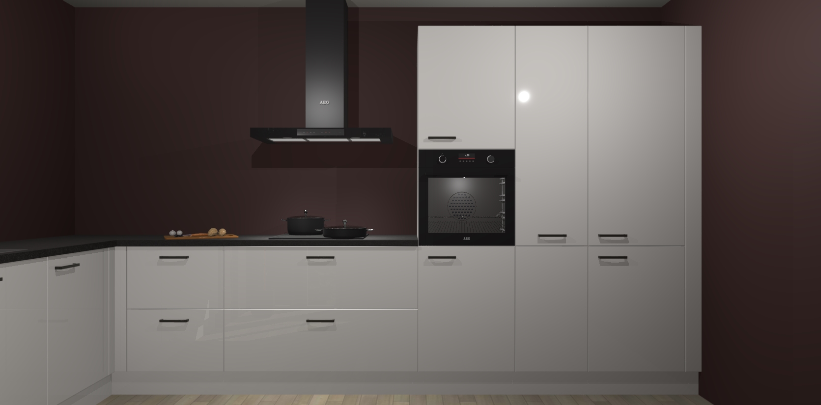Welkom bij de zijdegrijze hoogglans keuken Nuuk. Deze prachtige keuken zal de komende jaren het middelpunt van de belangstelling in uw huis zijn. Uitgerust met vijf inbouwapparaten komt u nooit kookgereedschap tekort.