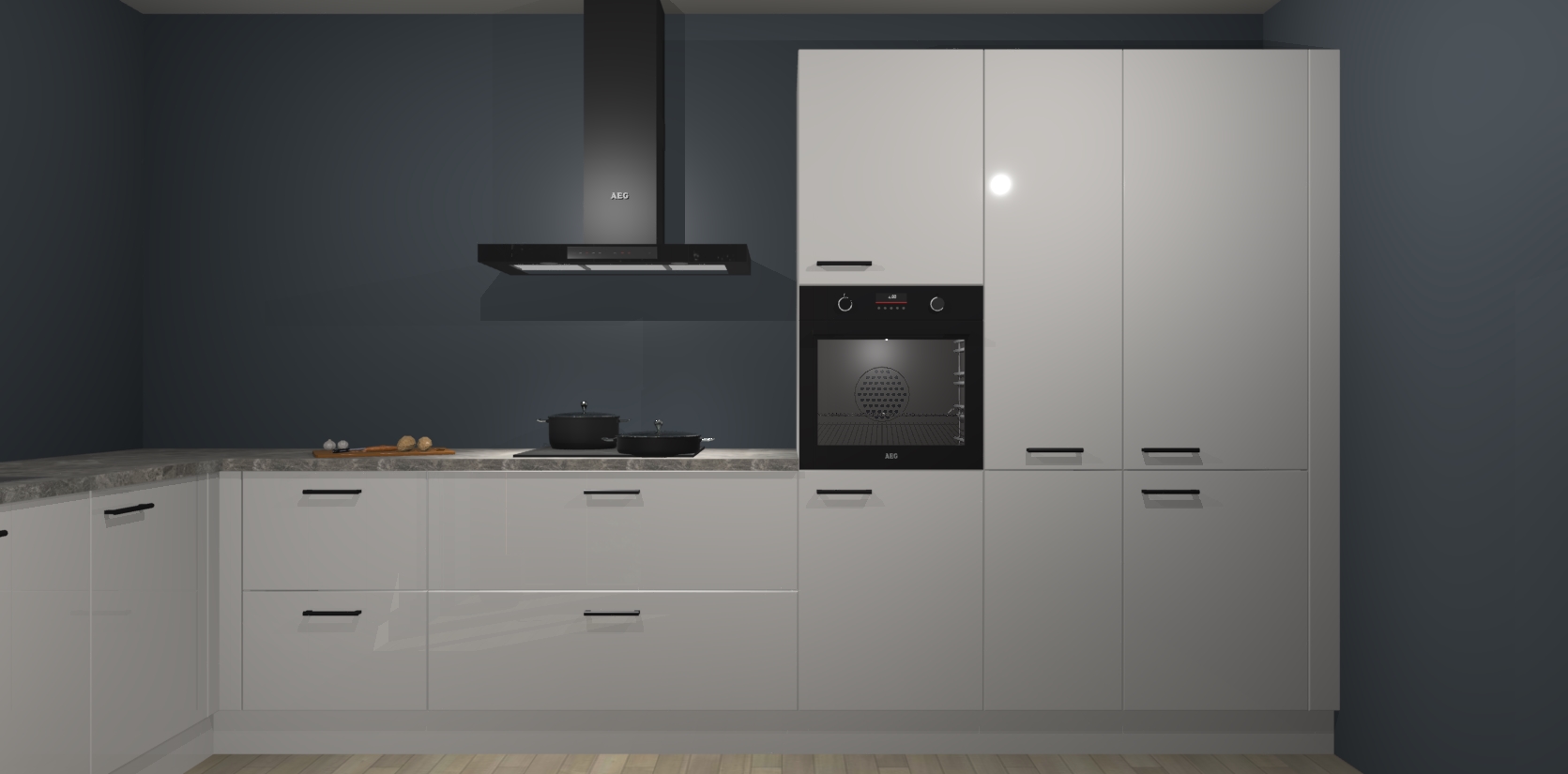 Welkom bij de zijdegrijze hoogglans keuken Nuuk. Deze prachtige keuken zal de komende jaren het middelpunt van de belangstelling in uw huis zijn. Uitgerust met vijf inbouwapparaten komt u nooit kookgereedschap tekort.