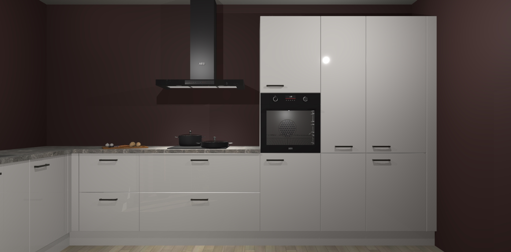 Welkom bij de zijdegrijze hoogglans keuken Nuuk. Deze prachtige keuken zal de komende jaren het middelpunt van de belangstelling in uw huis zijn. Uitgerust met vijf inbouwapparaten komt u nooit kookgereedschap tekort.