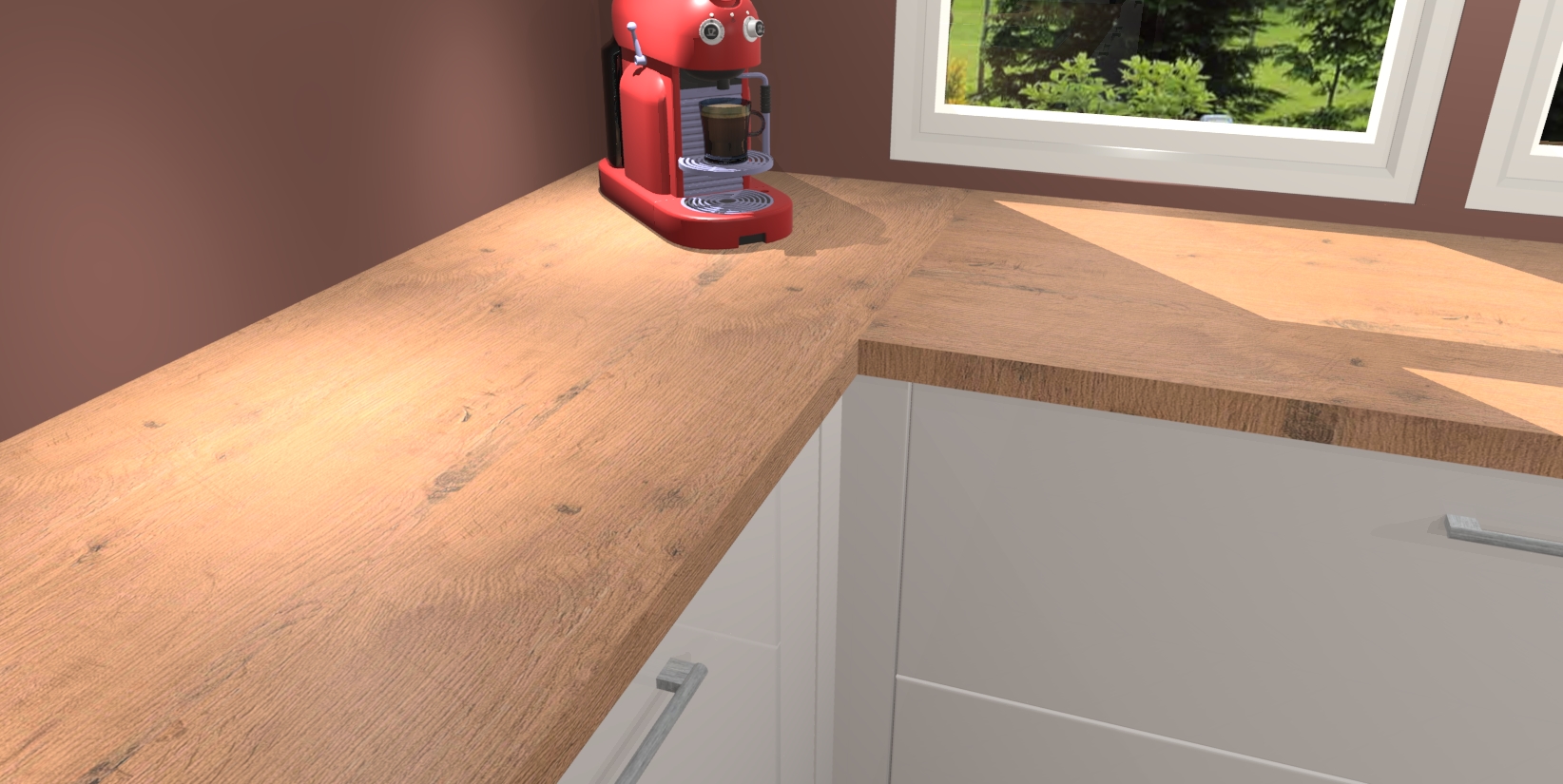 - Bij een hoekwerkblad zijn de hoeken in gevreesd en op maat gemaakt
