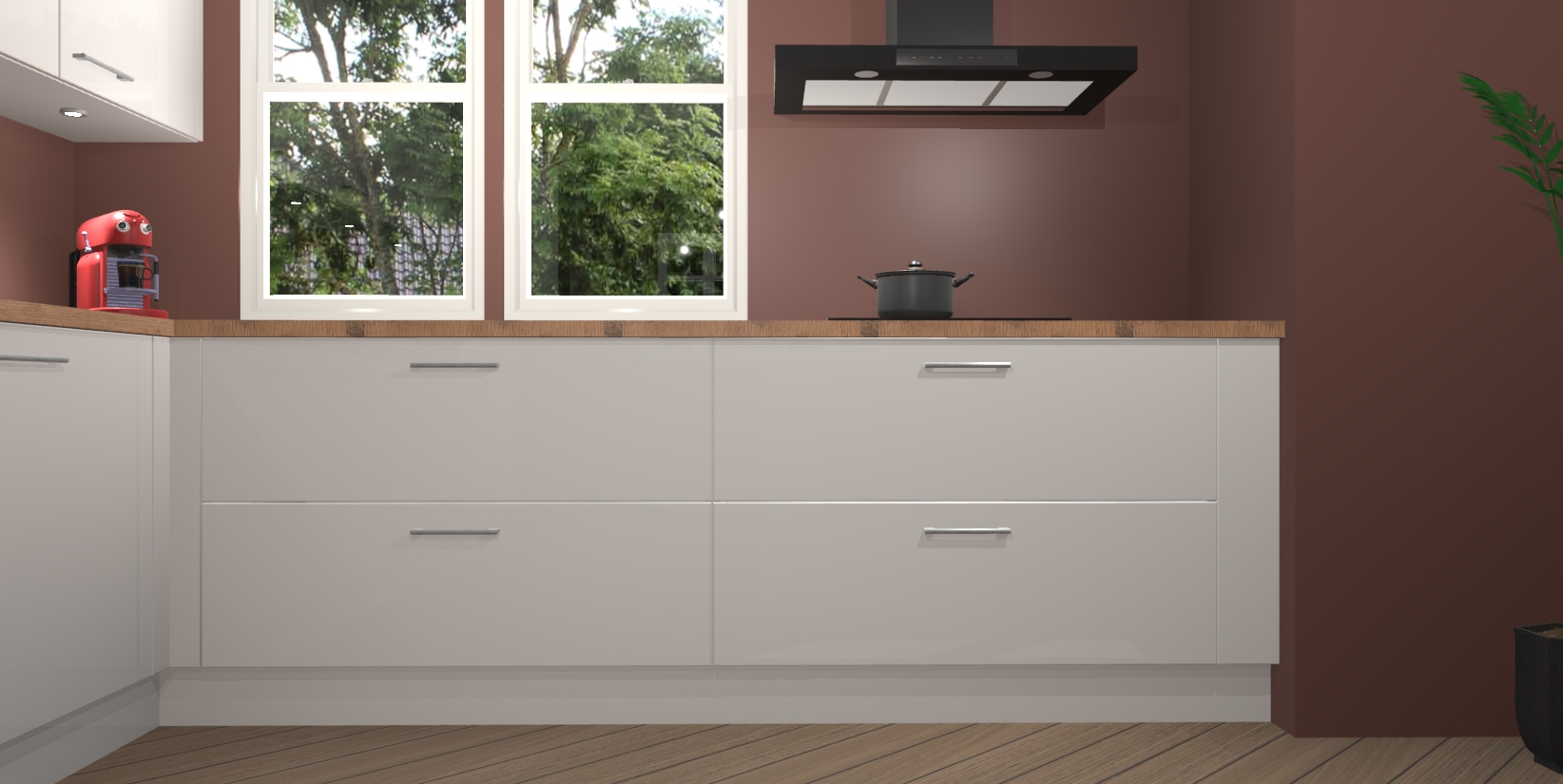 Inclusief plinten, stelpoten en werkblad
